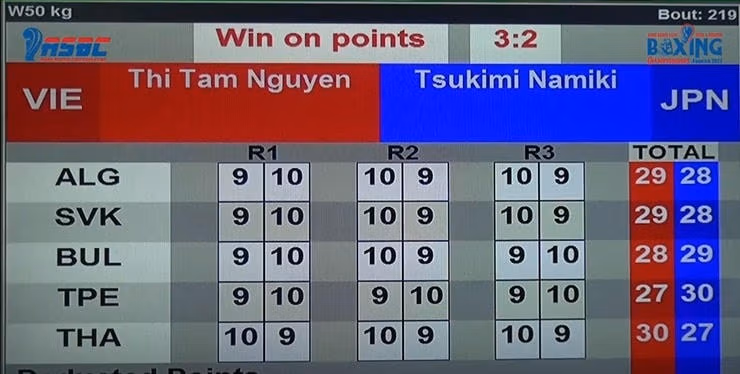 Ở trận chung kết hạng cân 50 kg nữ giải Boxing vô địch châu Á (ASBC Elite Boxing Championship) 2022 diễn ra tối ngày 11/11 tại Jordan, võ sĩ người Việt Nam Nguyễn Thị Tâm đối đầu với tay đấm người Nhật Bản Tsukimi Namiki.