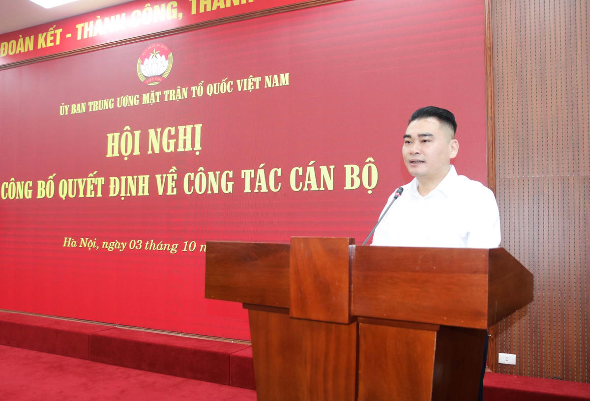 Nhà báo Trần Bảo Trung khẳng định sẽ đoàn kết, phát huy bản lĩnh, không ngừng rèn luyện, phấn đấu cùng tập thể cán bộ, phóng viên, biên tập viên Tạp chí Mặt trận hoàn thành tốt nhiệm vụ mà Đảng đoàn, Ban Thường trực UBTƯ MTTQ Việt Nam đã giao phó.