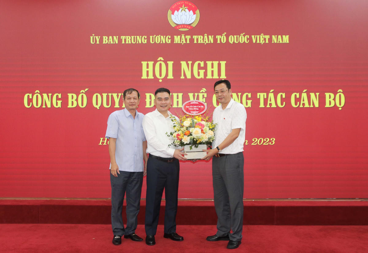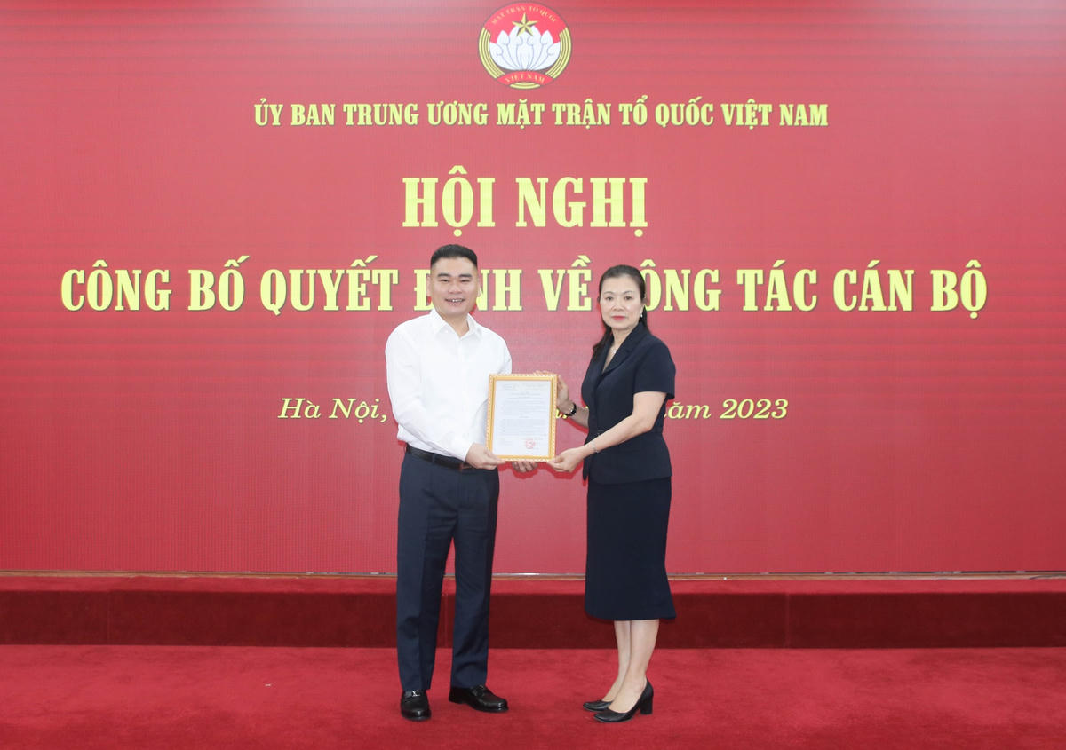Được sự đồng ý của Đảng đoàn, Ban Thường trực UBTƯ MTTQ Việt Nam, Phó Chủ tịch - Tổng Thư ký UBTƯ MTTQ Việt Nam Nguyễn Thị Thu Hà đã ký Quyết định số 2088/QĐ-MTTW-BTT ngày 29/9/2023 về việc điều động và bổ nhiệm viên chức lãnh đạo, quản lý.