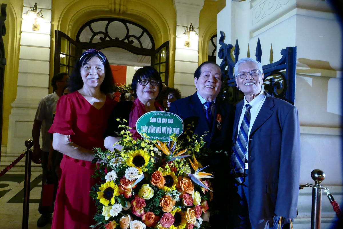 Bên dưới là những bậc trưởng lão của làng văn và cũng là đồng đội của Hữu Thỉnh, là những lứa văn nghệ sĩ kế cận kề vai sát cánh với ông cũng như đang mê đắm trước sự thiêng liêng của thi ca, của trái tim nồng hậu của lứa nhà thơ chống Mỹ mà Hữu Thỉnh là một trong những đỉnh cao, người dẫn dắt cho tới hôm nay.