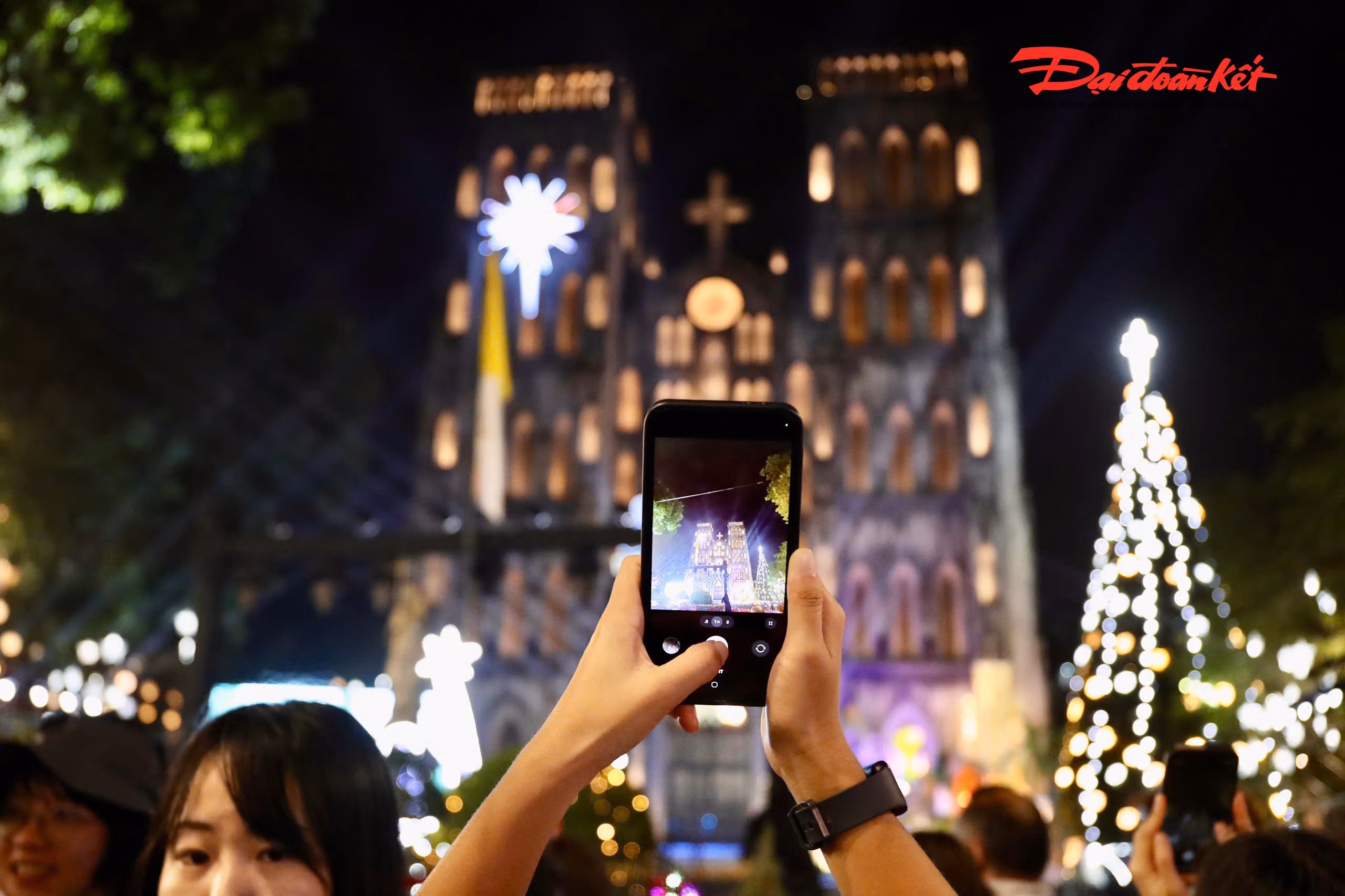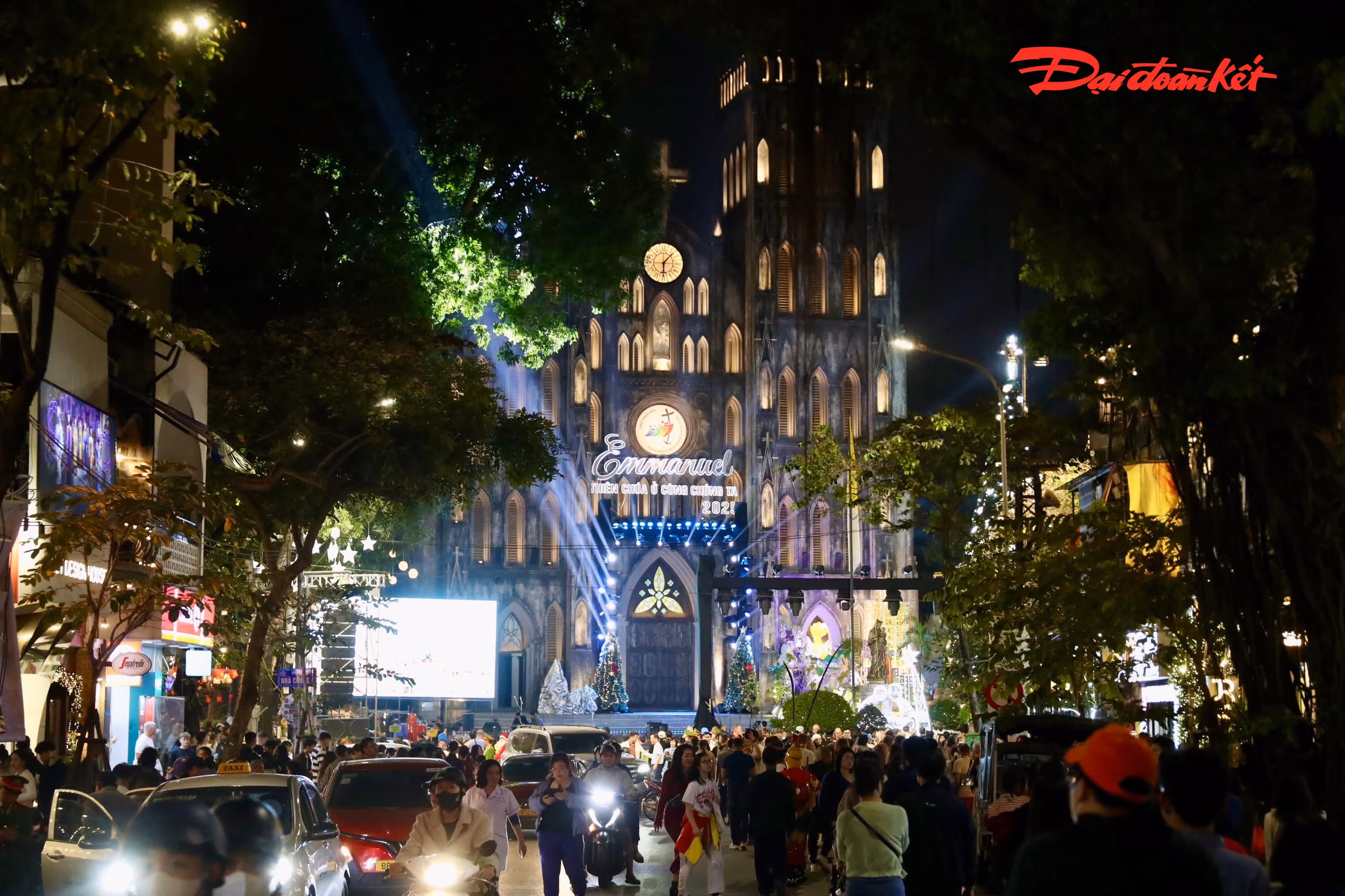 Tối 24/12, khu vực Nhà Thờ lớn Hà Nội trở thành tâm điểm của Thủ đô khi hàng vạn người dân và du khách đổ về đây để hòa mình vào không khí Giáng sinh. Dòng người ken đặc tạo nên khung cảnh nhộn nhịp hiếm thấy giữa lòng phố cổ.