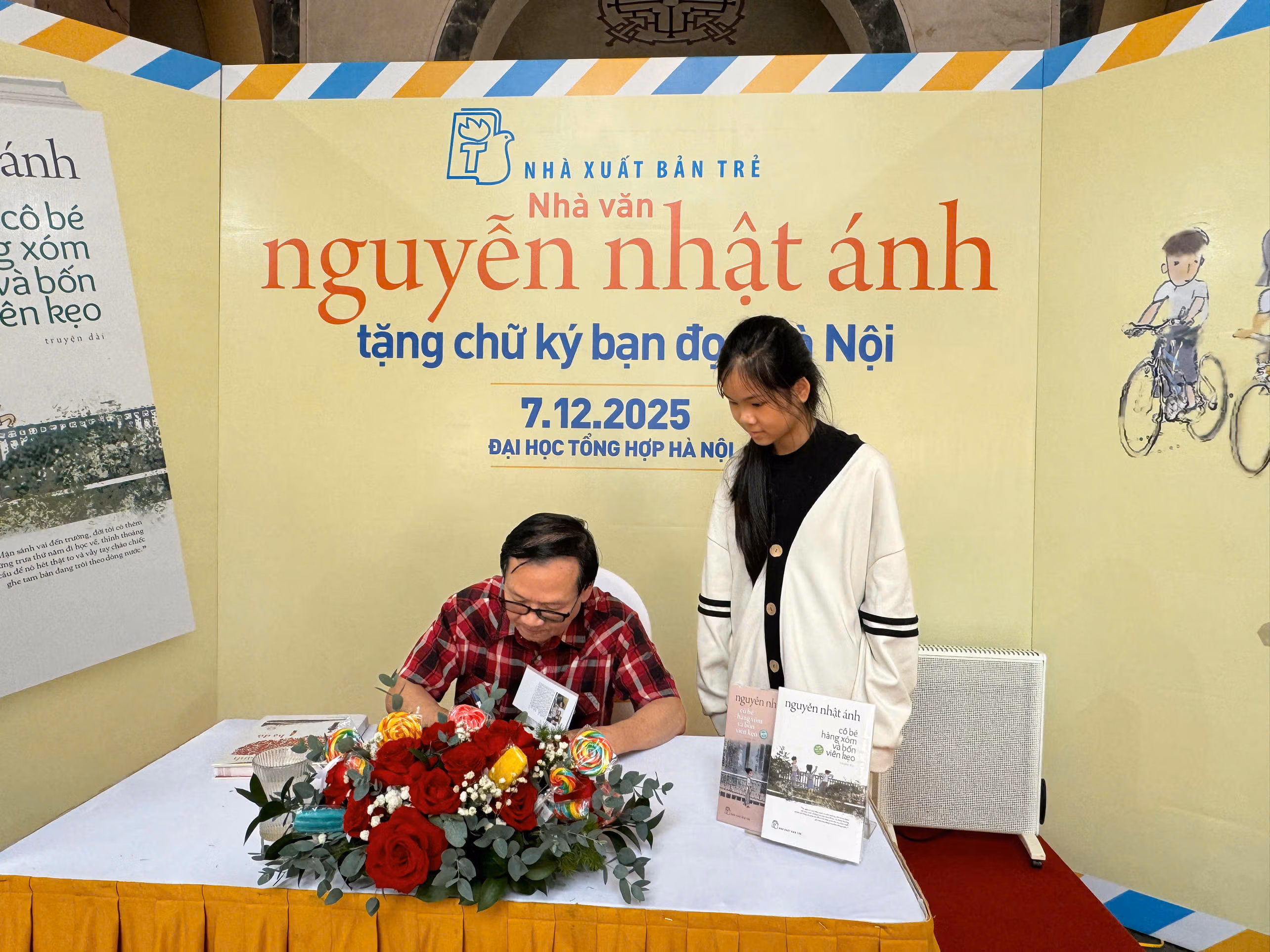 Ngày 7/12, tại hội trường Đại học Tổng hợp (Hoàn Kiếm, Hà Nội), NXB Trẻ tổ chức sự kiện “Nhà văn Nguyễn Nhật Ánh tặng chữ ký bạn đọc” nhân dịp tác phẩm “Cô bé hàng xóm và bốn viên kẹo” ra mắt bạn đọc.