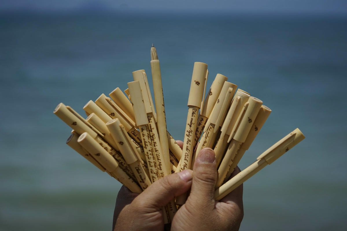 Anh Phận cho hay, công đoạn khó nhất chính là khắc lên bút, bởi chỉ cần sai một nét hoặc một lỗi chính tả, người nghệ nhân phải bỏ cả cây bút để làm lại từ đầu. Vậy nên, sản phẩm bút bi tre chứa trọn tâm huyết, sự tỉ mỉ của người thợ đặt vào. Anh Phận luôn khiến khách hàng ngạc nhiên vì hình ảnh được khắc vô cùng tinh tế.