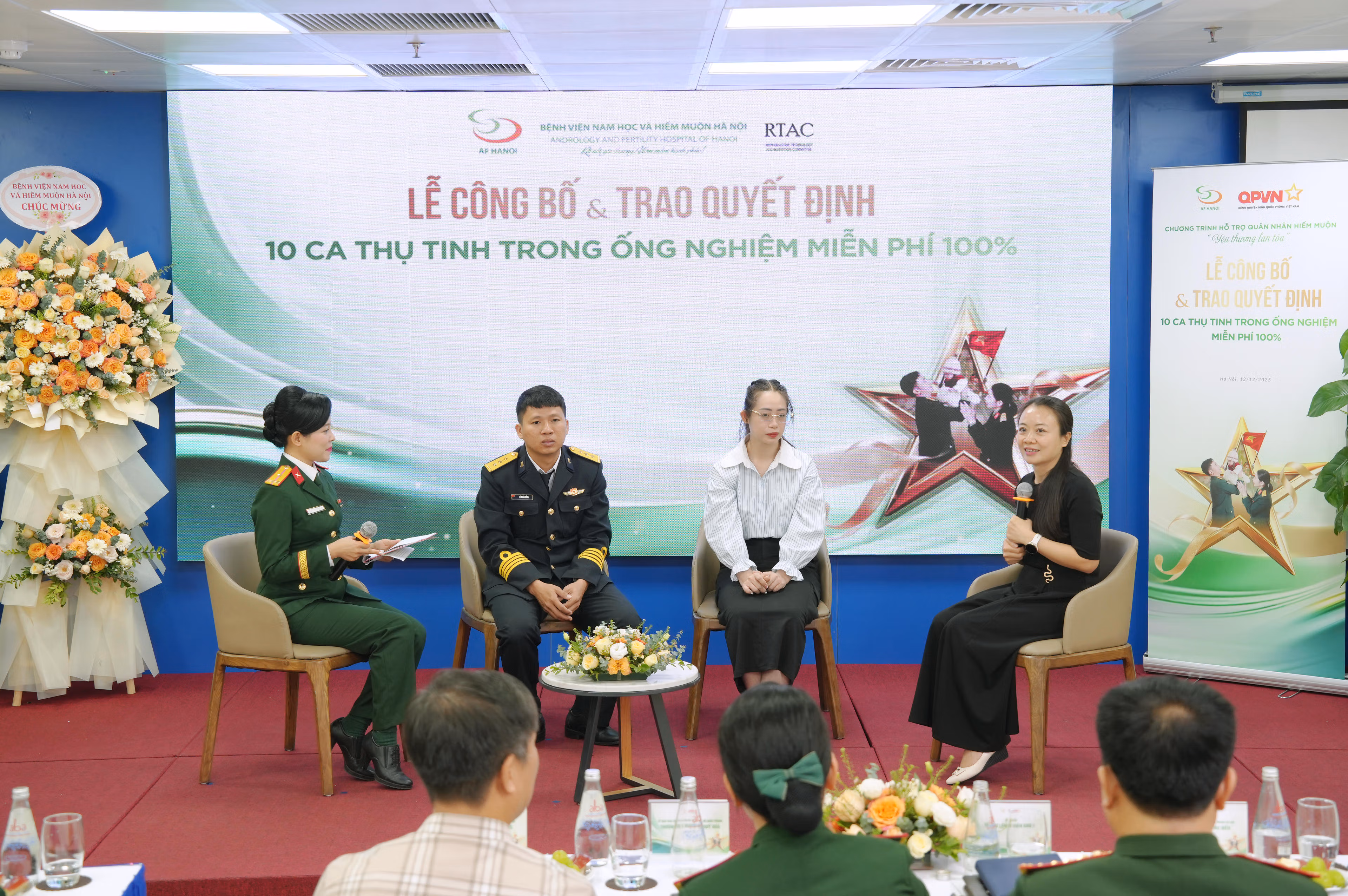 BSCKI Phạm Văn Hưởng, Phó Giám đốc chuyên môn Bệnh viện Nam học và Hiếm muộn Hà Nội, chia sẻ: “Trong lực lượng quân đội hiện có hàng nghìn quân nhân khao khát được đón con yêu, nhưng không phải ai cũng đủ điều kiện để theo đuổi hành trình điều trị hiếm muộn đến cùng. Chỉ cần bớt đi một rào cản, mỗi gia đình sẽ có thêm quyết tâm để bước tiếp. Chính vì vậy, Bệnh viện luôn mong muốn mang đến những hỗ trợ thiết thực nhất, không chỉ giúp giảm bớt gánh nặng chi phí mà còn để mỗi gia đình cảm nhận được rằng họ không đơn độc trong hành trình ấy. Hy vọng rằng những hỗ trợ của chương trình sẽ trở thành nguồn động viên kịp thời, giúp các gia đình quân nhân thêm vững tin vào hành trình xây dựng tổ ấm. Đối với chúng tôi, mỗi hy vọng được thắp lên, mỗi em bé chào đời khỏe mạnh đều là minh chứng ý nghĩa cho giá trị nhân văn mà Bệnh viện luôn hướng đến”.