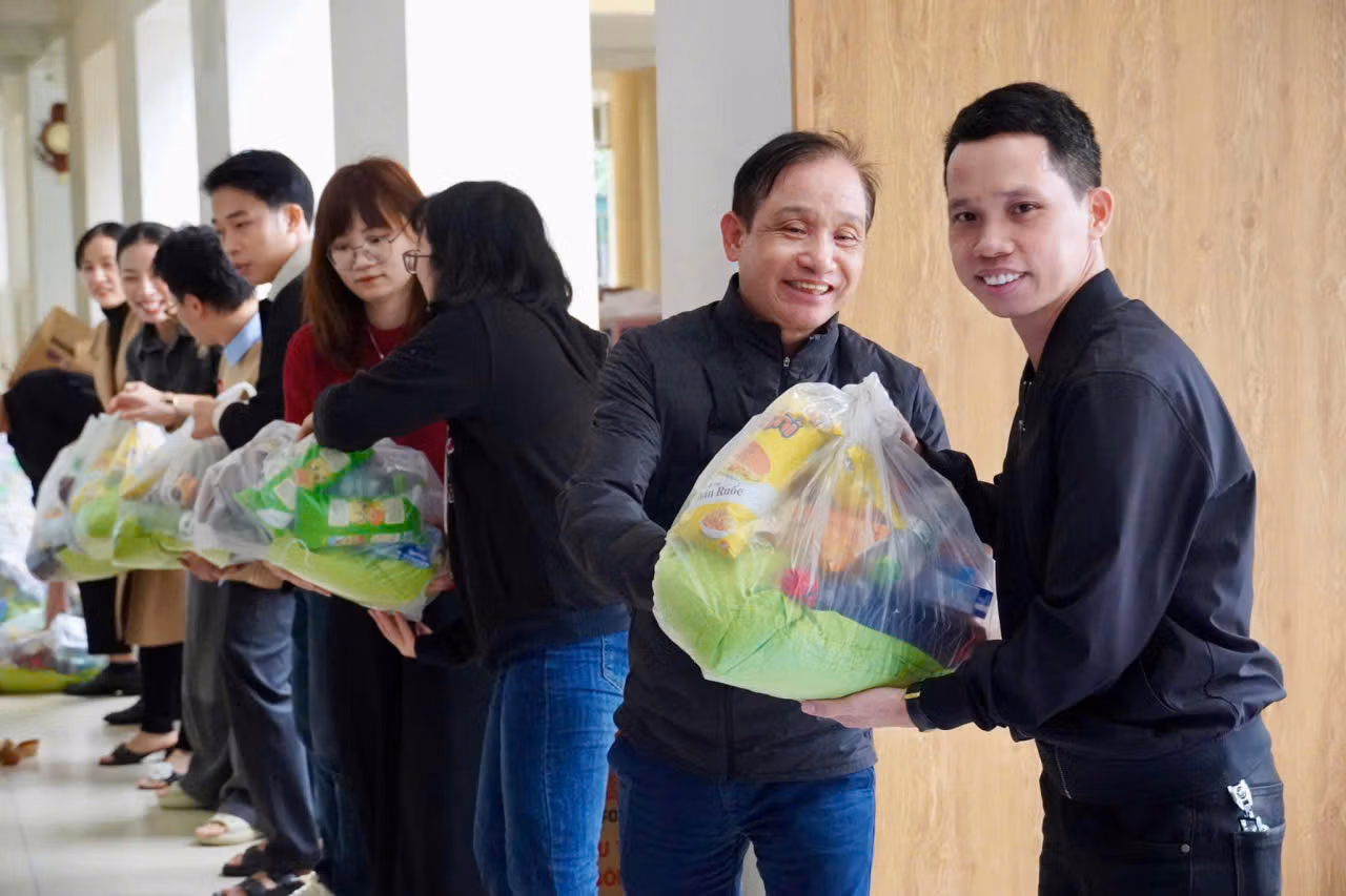 "Trước tình hình lũ lụt ở các tỉnh Nam Trung Bộ, nhà trường kêu gọi, động viên cán bộ, viên chức, người lao động và cả các anh chị cựu sinh viên, cựu học sinh cùng chung tay, hỗ trợ bà con với mong muốn sẻ chia với người dân vượt qua giai đoạn khó khăn hiện nay", TS. Lê Hồ Sơn nói.