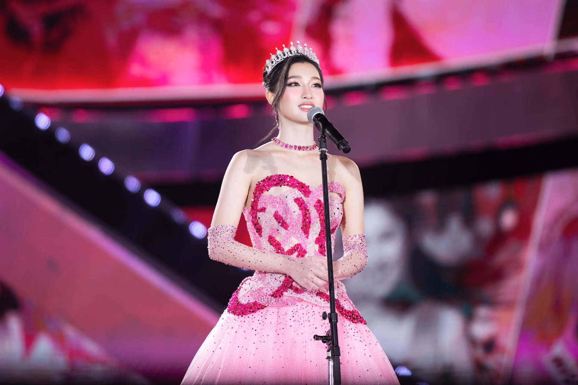 Trong những khoảnh khắc sải bước cuối cùng trên cương vị đương kim Miss World Vietnam 2022, Mai Phương khiến cho nhiều khán giả, khách mời không khỏi rơi nước mắt với bài phát biểu đầy cảm xúc, kỷ niệm trong 1 năm đương nhiệm của mình.