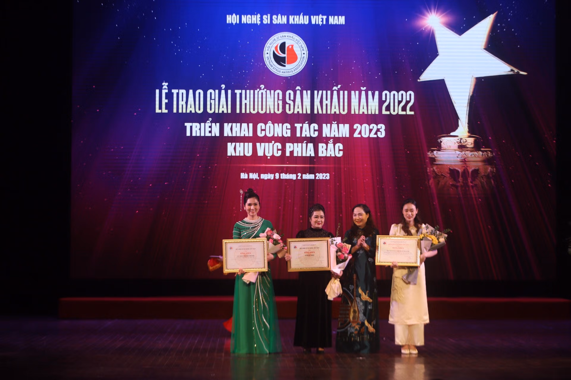 Tối 9/2, tại Nhà hát Lớn Hà Nội, Hội Nghệ sĩ Sân khấu Việt Nam đã tổ chức lễ trao giải thưởng sân khấu năm 2022 và triển khai công tác nhiệm vụ khu vực phía Bắc.