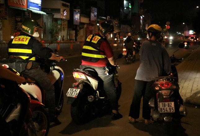 Hằng đêm, các thành viên tập trung tại địa điểm cố định trên đường Phạm Văn Đồng (phường 3, quận Gò Vấp) và cùng nhau rảo qua nhiều con đường để hỗ trợ người dân. Ảnh: Ngô Tùng.