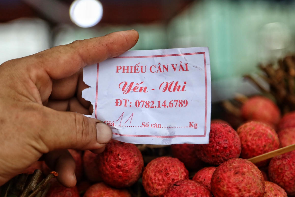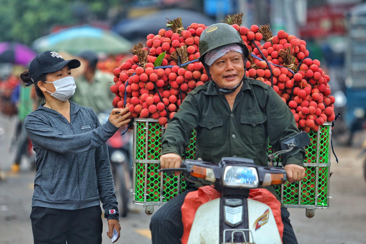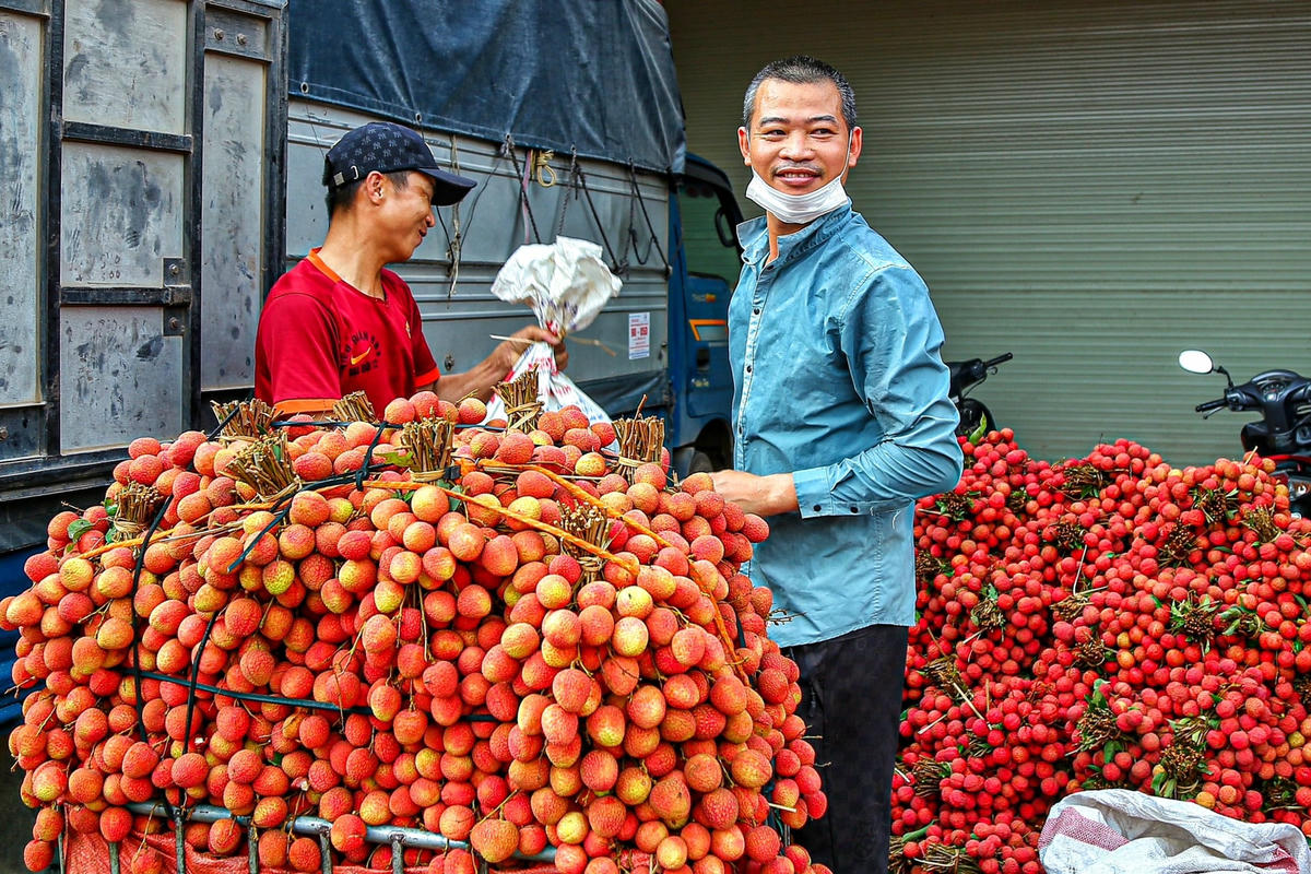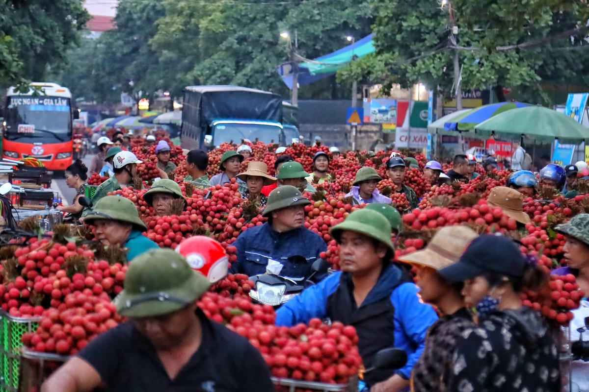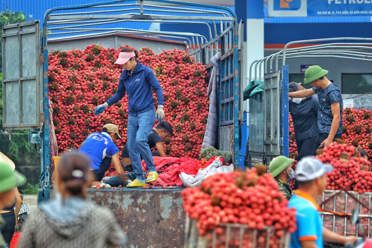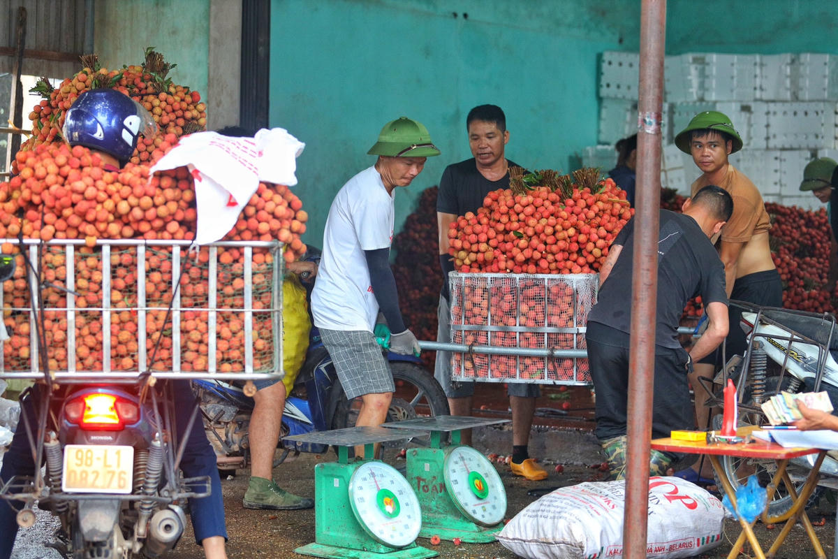 Ngay từ sáng sớm, những người nông dân hồ hởi chở vải từ vườn ra hàng trăm điểm thu mua để cân bán. Để việc mua bán diễn ra nhanh chóng, những chùm vải được sắp xếp thành bó gọn gàng, bắt mắt rồi chất vào sọt. Từng hàng dài xe chở đầy ắp vải nối đuôi nhau đến điểm mua bán. Dù tất bật, vất vả nhưng người trồng vải luôn mong ngày nào cũng được chở vải đi để cân và bán đắt hàng. Giá vải thiều năm nay dao động từ 10.000 - 30.000 đồng/kg tùy vào chất lượng quả.