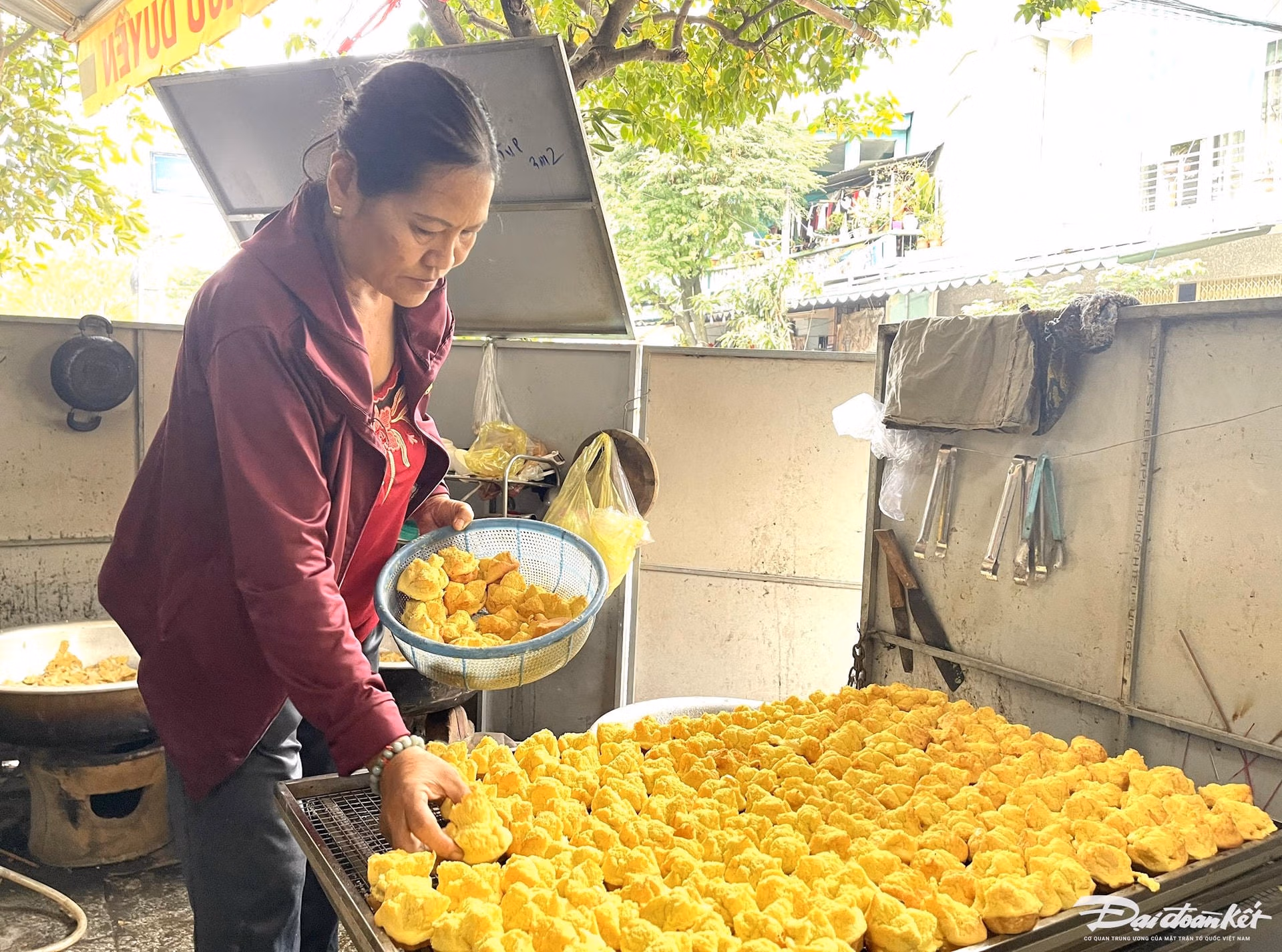 Bà Lê Thị Kim Liên chia sẻ: “Nhìn nguyên liệu, cách làm bánh có vẻ đơn giản nhưng để cho ra những chiếc bánh Thuẫn nở đúng độ, vàng đều, mịn nở bung ra như cánh hoa mai thì không phải dễ dàng”.