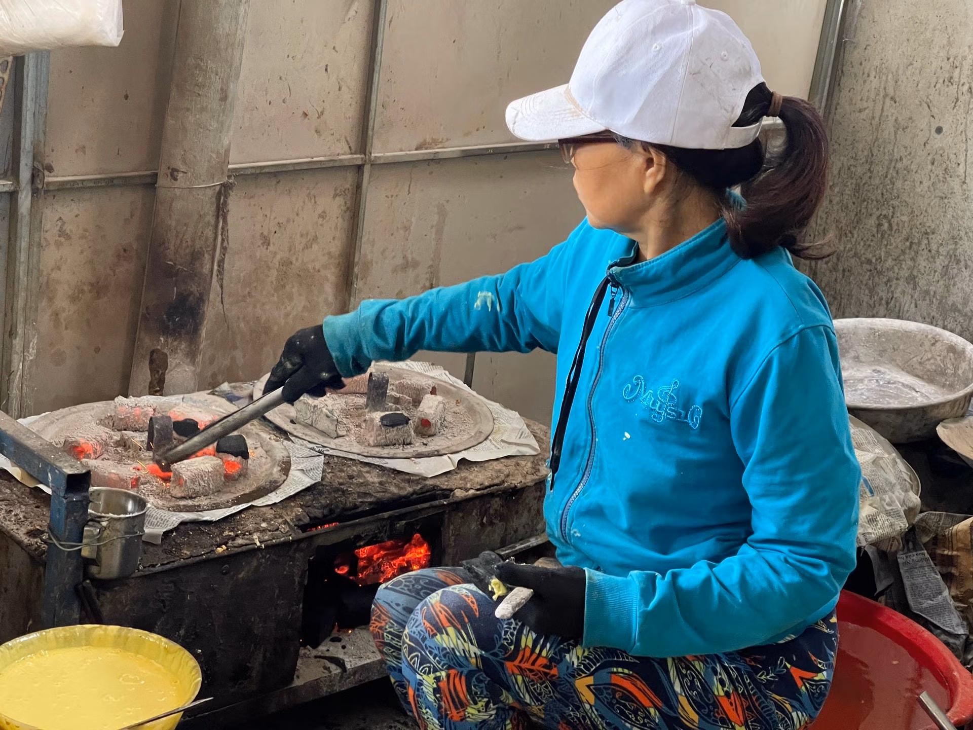 Người làm bánh gần như phải ngồi canh lửa trong suốt thời gian làm bánh. Bởi chỉ cần lửa không đều thì bánh sẽ bên trắng, bên vàng; nóng quá thì bánh bị cháy đen, nhẹ thì nâu nâu, không lên được màu vàng bắt mắt.