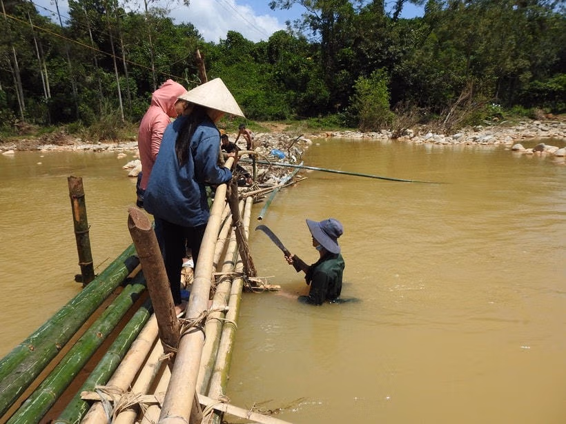 Gần 30 học sinh học tại các điểm trường bên kia suối hàng ngày đến trường đều phải đi qua suối bằng cầu tre tạm này. Khu vực lòng suối sâu, chảy xiết, rất nguy hiểm, chỉ cần trượt chân sẽ rơi xuống dòng nước chảy xiết. Các em thường xuyên phải nghỉ học mỗi khi mùa mưa bão đến.