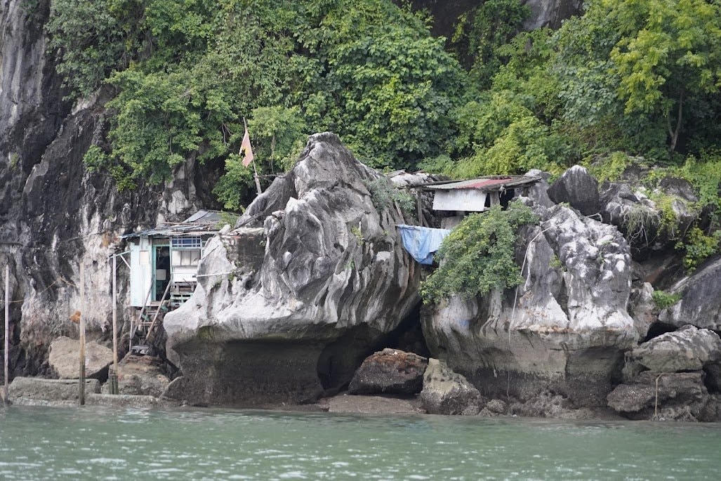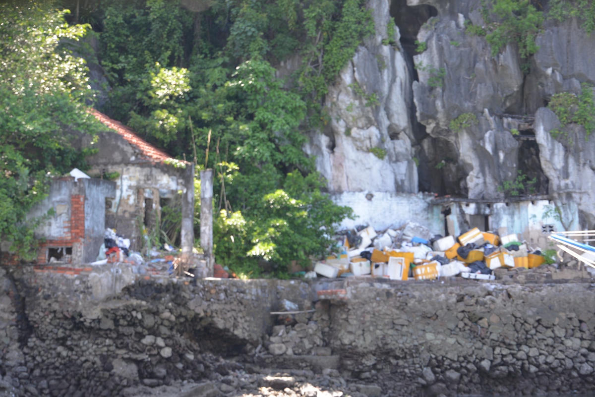 Có những công trình nhà ở, đền thờ của ngư dân được xây dựng từ lâu, nay đã vỡ nát. Nhiều “nhà” khác được dựng lên tạm bợ, có cả chuồng gà, chuồng chó bên vách núi, nhìn đã không muốn lại gần.