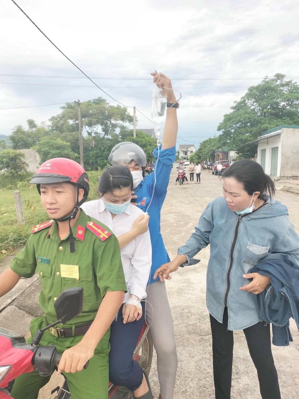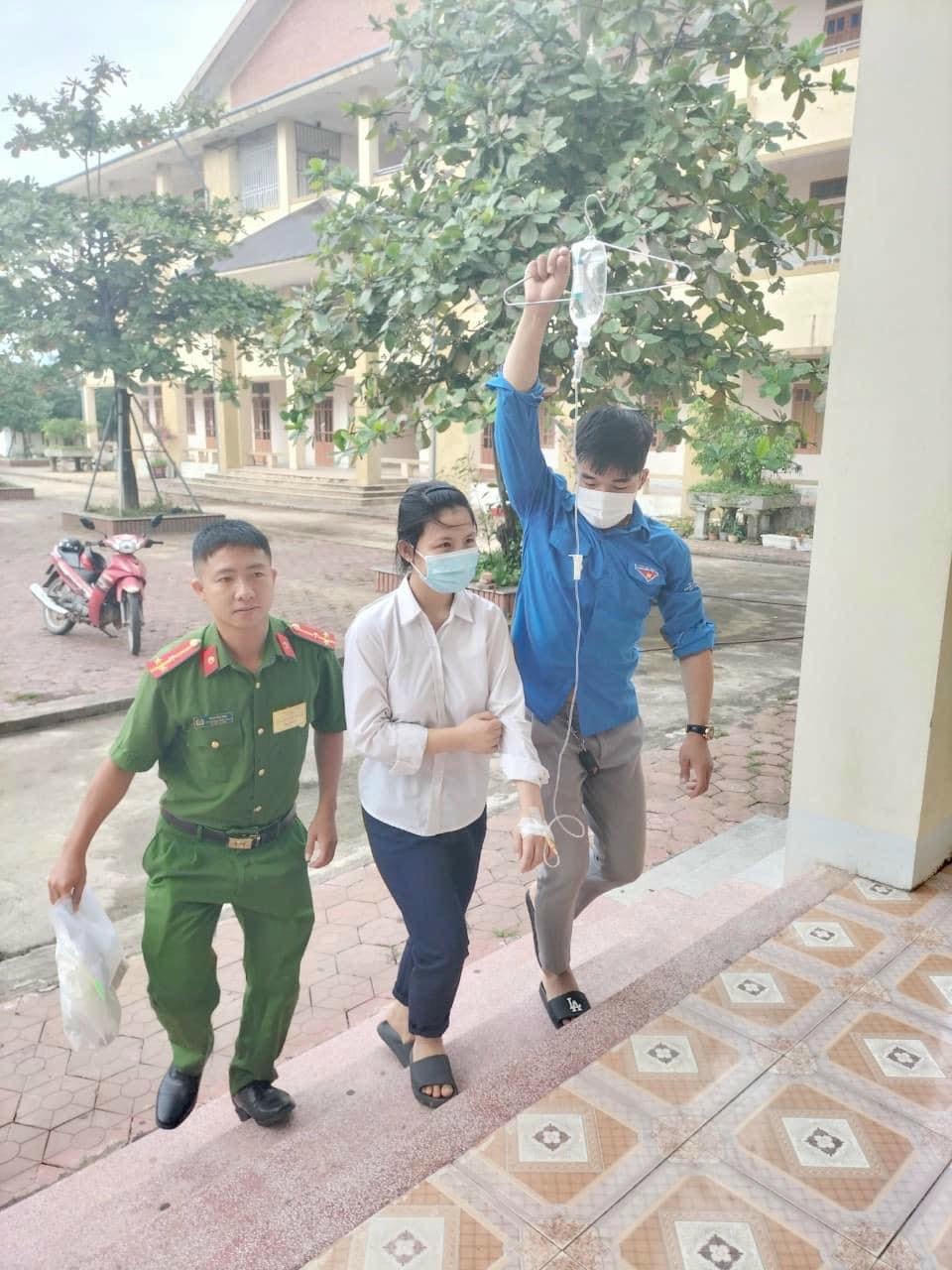 Sau khi nghe tin em Nhung bị đau bụng, đang phải truyền nước tại nhà, đội tình nguyện viên ở điểm Trường THPT Nguyễn Thị Bích Châu đến nhà để chở em Nhung đến điểm thi.