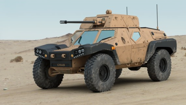 CRAB là viết tắt của Thiết bị bọc thép do thám và chiến đấu. Xe được bọc thép chống lại các loại đạn 7,62 li và mảnh vụn của pháo.