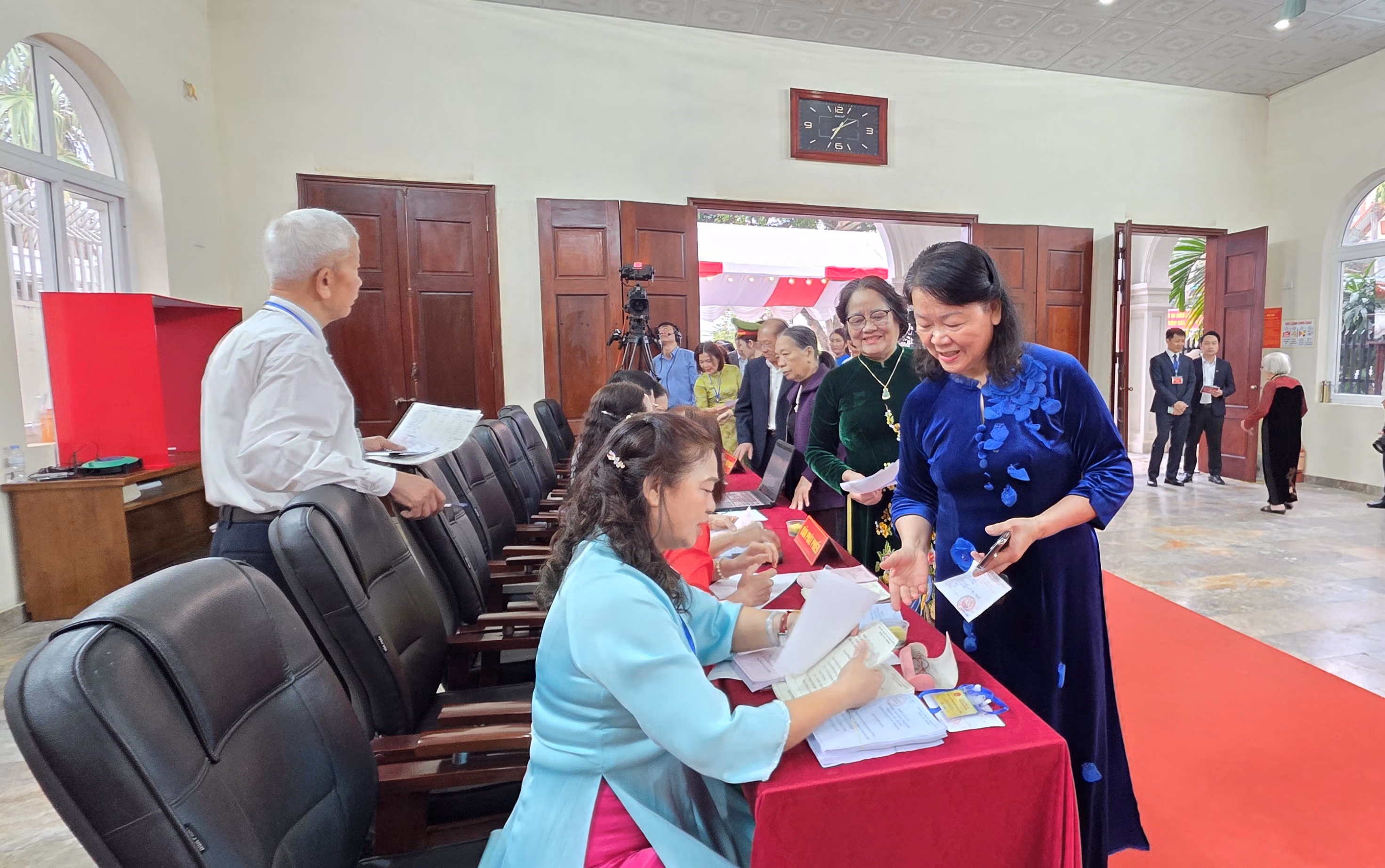 Trước sự chứng kiến của các cử tri, các hòm phiếu được kiểm tra và niêm phong cẩn thận đúng quy định. Đúng 7h00, Bí thư Tỉnh ủy Nguyễn Doãn Anh cùng các lãnh đạo và cử tri nhân dân đã tiến hành bỏ những lá phiếu đầu tiên – lá phiếu mang theo niềm tin và nhiều kỳ vọng.