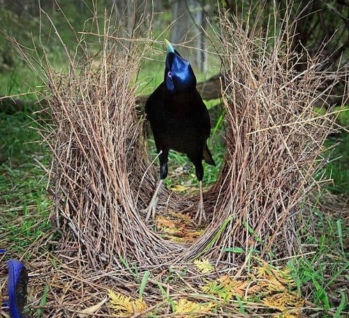 Loài chim này nổi tiếng là loài chim lãng mạn nhất bởi hành vi tán tỉnh của chúng khá độc đáo. Để thu hút chim cái, những con chim đực sẽ nỗ lực tạo ra ngôi nhà rực rỡ được trang trí bằng hoa, trái cây... Chim cái khi bị thu hút sẽ khám phá ngôi nhà tuyệt đẹp và tận hưởng tình yêu.