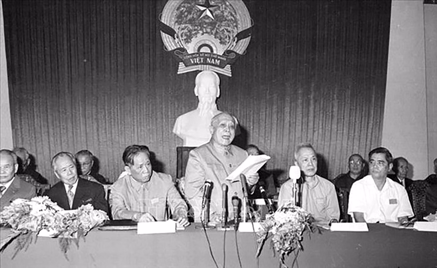 Ðại hội quốc dân họp ở Tân Trào vào tháng 8-1945 thông qua lệnh khởi nghĩa, lấy cờ đỏ sao vàng (cờ của Việt Minh) làm Quốc kỳ, bài hát Tiến quân ca làm Quốc ca, cử ra Ủy ban Dân tộc giải phóng Việt Nam. Đó là thời kỳ mẫu mực của đoàn kết dân tộc, tinh thần đoàn kết muôn người như một đã làm nên sức mạnh giành độc lập dân tộc, khai sinh ra nước Việt Nam dân chủ cộng hòa ngày 2/9/1945.