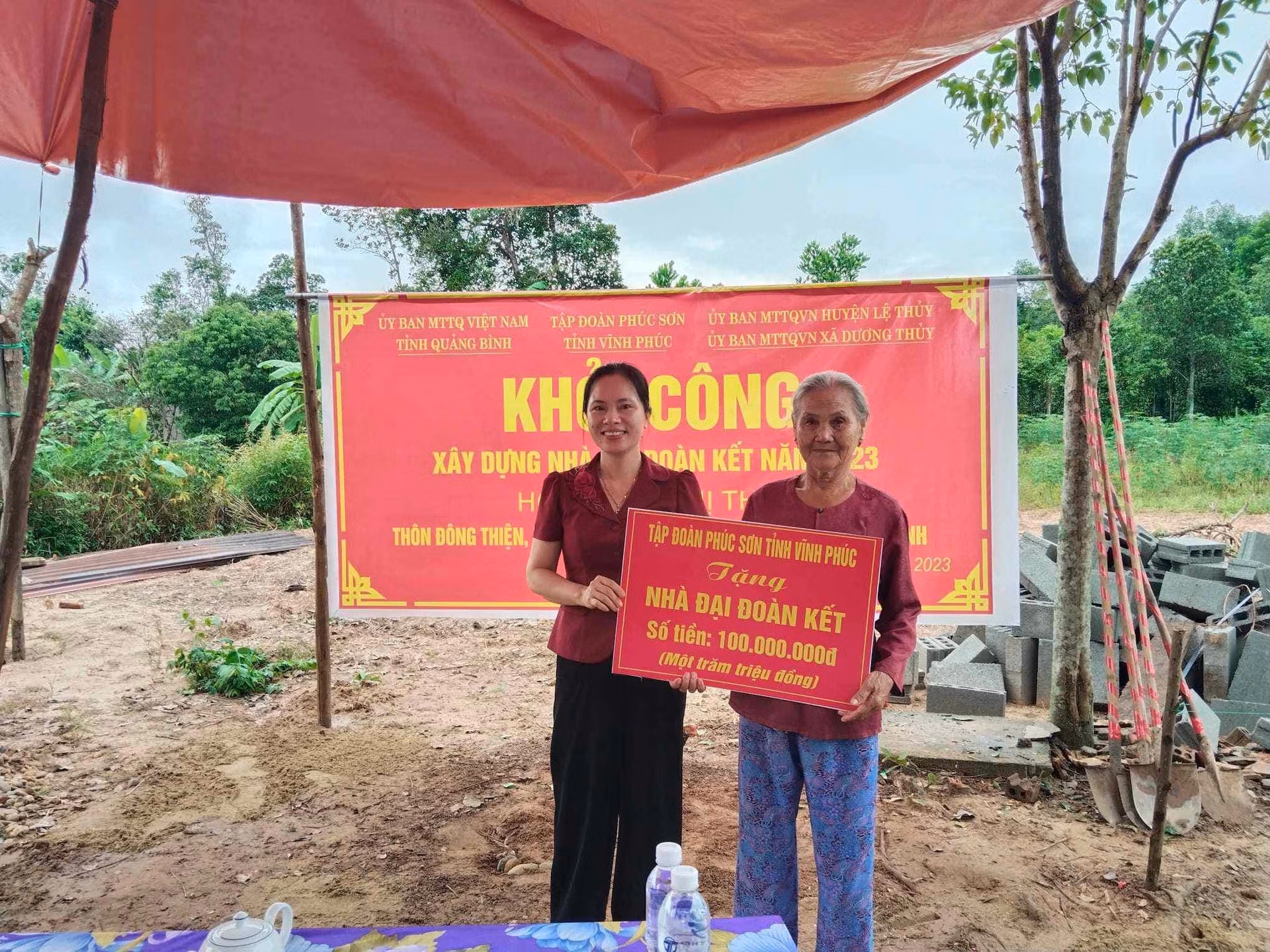 Bà Phạm Thị Hân - Chủ tịch Ủy ban MTTQ tỉnh Quảng Bình cho biết, cùng với công tác hỗ trợ từ nguồn Quỹ cứu trợ tỉnh, MTTQ các cấp cùng với chính quyền, các đoàn thể địa phương cần tích cực phối hợp, giúp đỡ các hộ gia đình đẩy nhanh tiến độ xây dựng các nhà Đại đoàn kết, phấn đấu bàn giao, đưa vào sử dụng trong thời gian sớm nhất, giúp người dân ổn định cuộc sống. Đồng thời vận động các tổ chức, doanh nghiệp, nhà hảo tâm và bà con cùng chung tay hỗ trợ thêm kinh phí và ngày công giúp các hộ nghèo xây dựng hoàn thành ngôi nhà Đại đoàn kết kiên cố, khang trang, vững chãi.