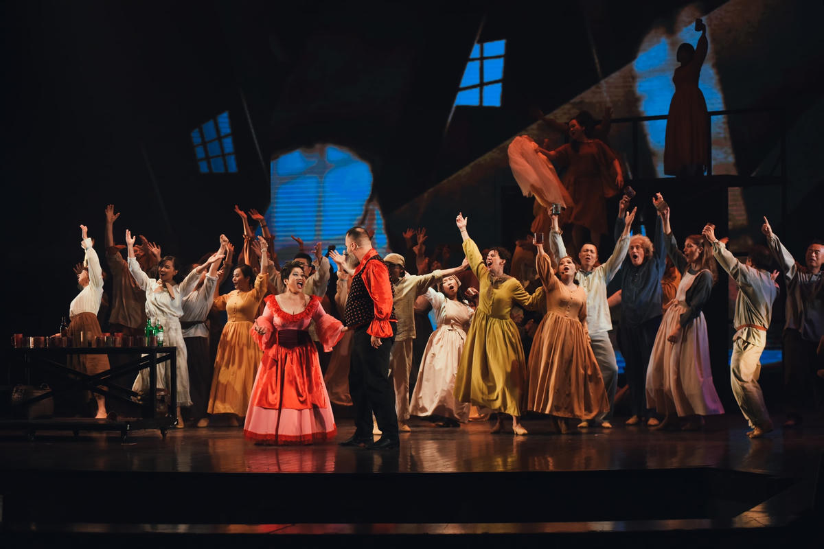 Những giai điệu quen thuộc gắn liền số phận của các nhân vật chính được dàn dựng công phu và thể hiện bởi những nghệ sĩ Việt như Đào Tố Loan, Huy Đức, Trịnh Thanh Bình, Thế Tùng Lâm, Anh Vũ, Bùi Thị Trang, Trần Trang... Với sự góp mặt của hơn 150 nghệ sĩ, diễn viên cùng ekip sáng tạo, vở diễn cho thấy đỉnh cao của các nghệ sĩ Việt Nam, từ kỹ thuật thanh nhạc theo phong cách hát Bel Canto, phong cách điệu nghệ của dàn nhạc cho tới kỹ năng phối hợp giữa hát, vũ đạo và diễn xuất trên sân khấu. Ngoài ra, vở nhạc kịch còn có sự hợp tác cùng dàn hợp xướng quốc tế Hanoi Voices cùng các diễn viên đa quốc tịch: Pháp, Ba Lan, Nga, Italia... tạo thành tổng thể hài hòa giúp lôi cuốn khán giả từ khi mở màn tới cảnh cuối cùng.