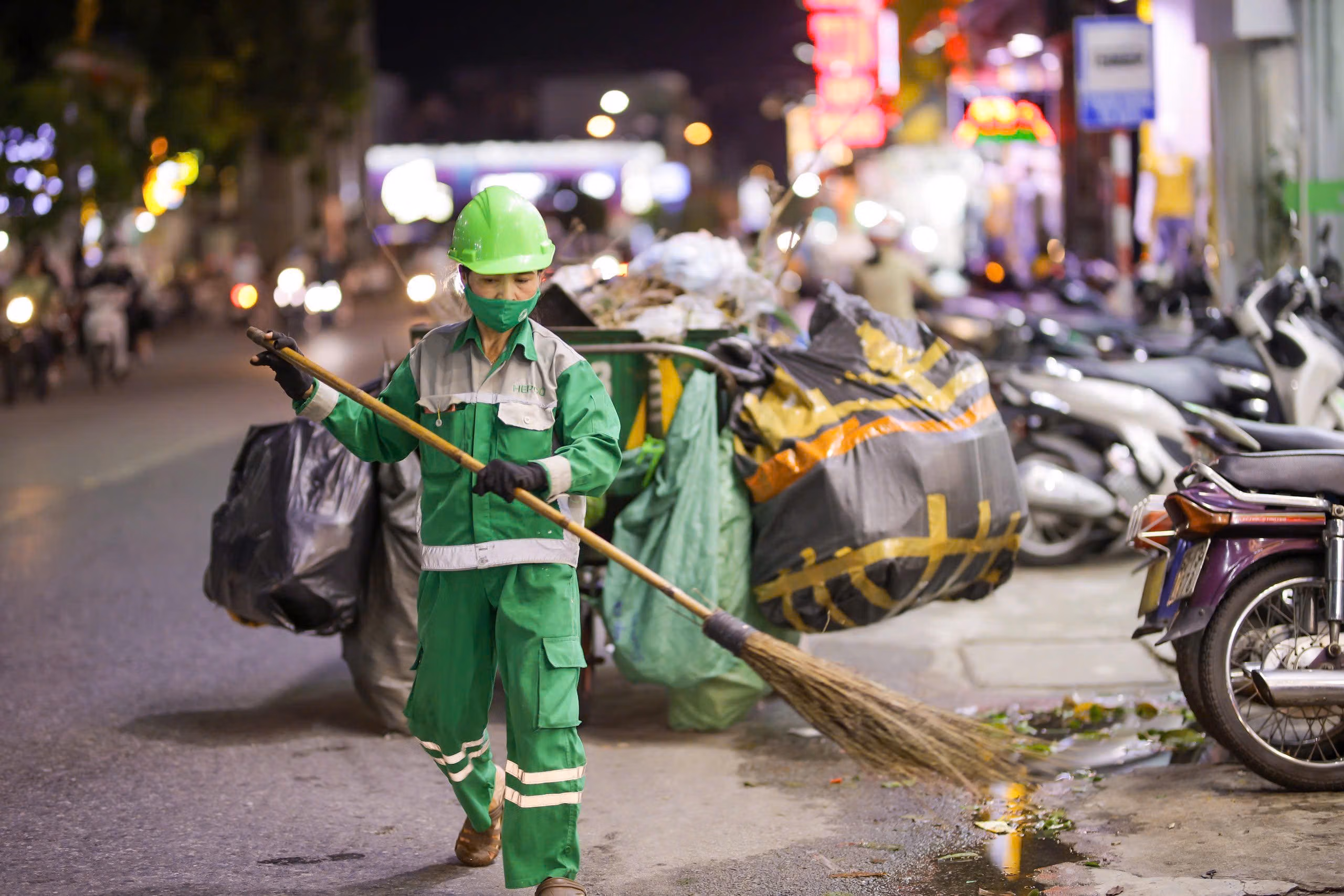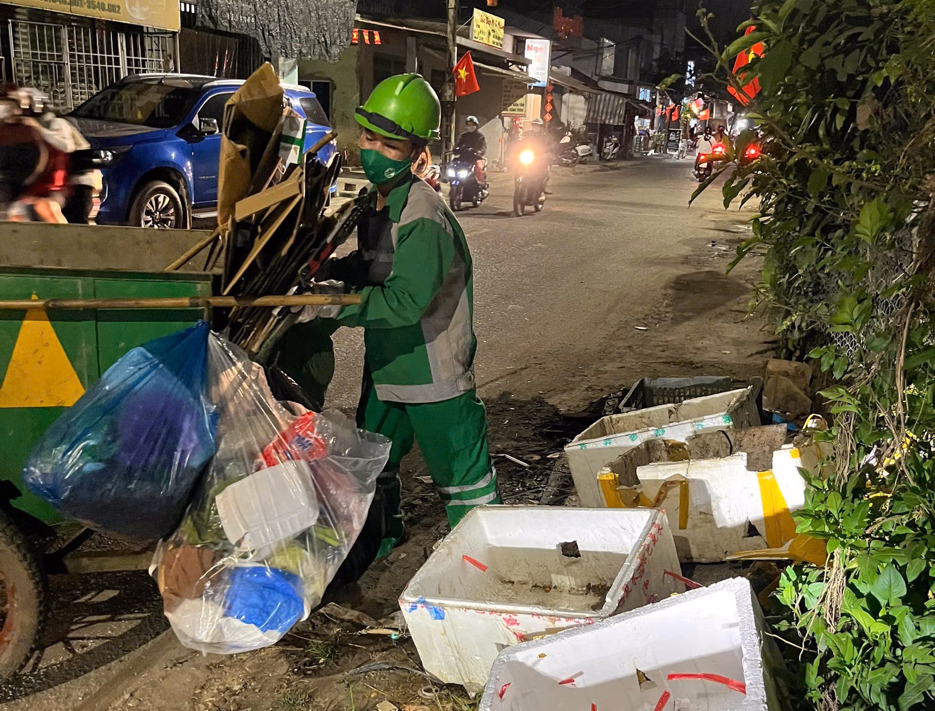 Những ngày giáp Tết Nguyên đán Bính Ngọ, khi mọi người đang chuẩn bị đón Xuân, cũng là lúc các công nhân môi trường ở Huế tất bật với công việc thu gom rác, làm sạch đường phố để giữ không gian đô thị xanh, sạch, sáng.