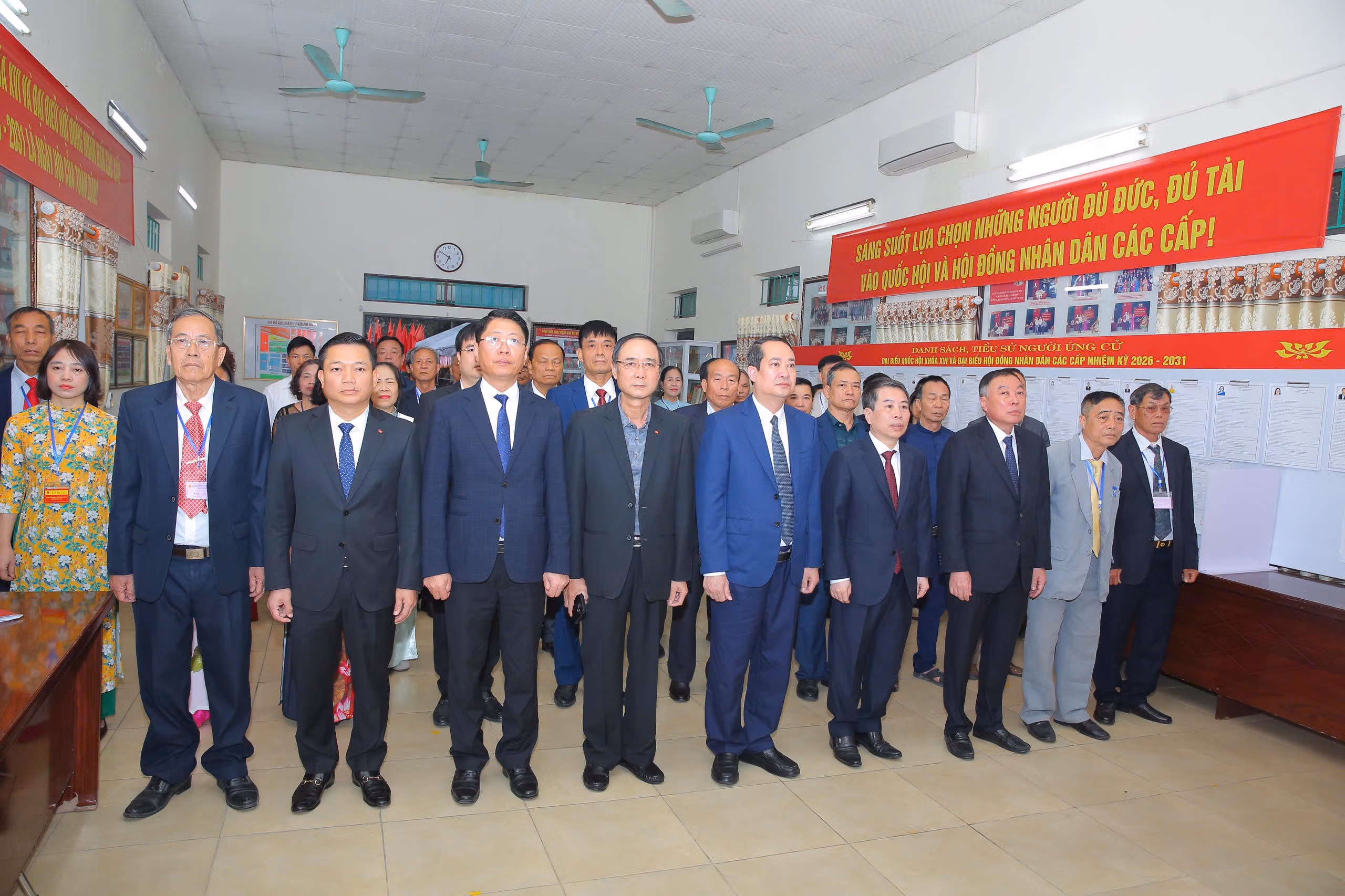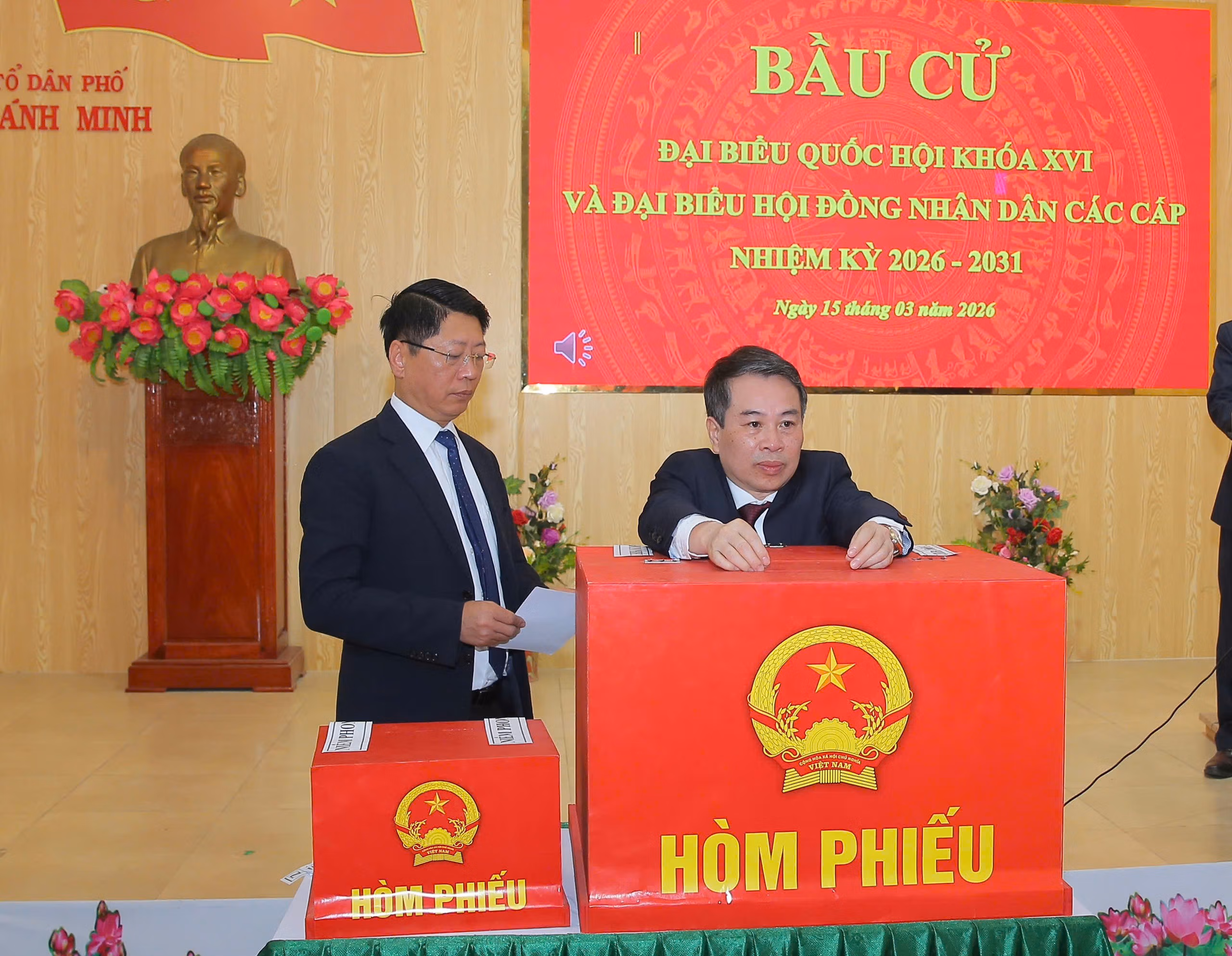 Ngay sau lễ khai mạc, vào lúc 7h cùng ngày, ông Mai Văn Tuất - Phó Bí thư Tỉnh ủy, Chủ tịch Ủy ban MTTQ tỉnh; ông Bùi Hoàng Hà - Phó Chủ tịch Thường trực HĐND tỉnh và ông Trần Song Tùng - Phó Chủ tịch Thường trực UBND tỉnh Ninh Bình đã tham gia bỏ phiếu. Trong đó, Chủ tịch Ủy ban MTTQ tỉnh Mai Văn Tuất là người thực hiện lá phiếu đầu tiên tại điểm bầu cử này.