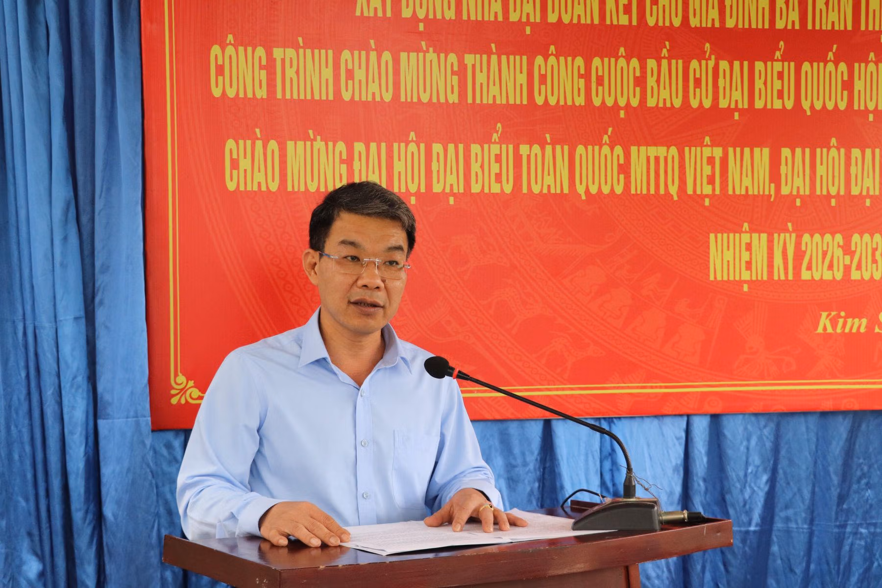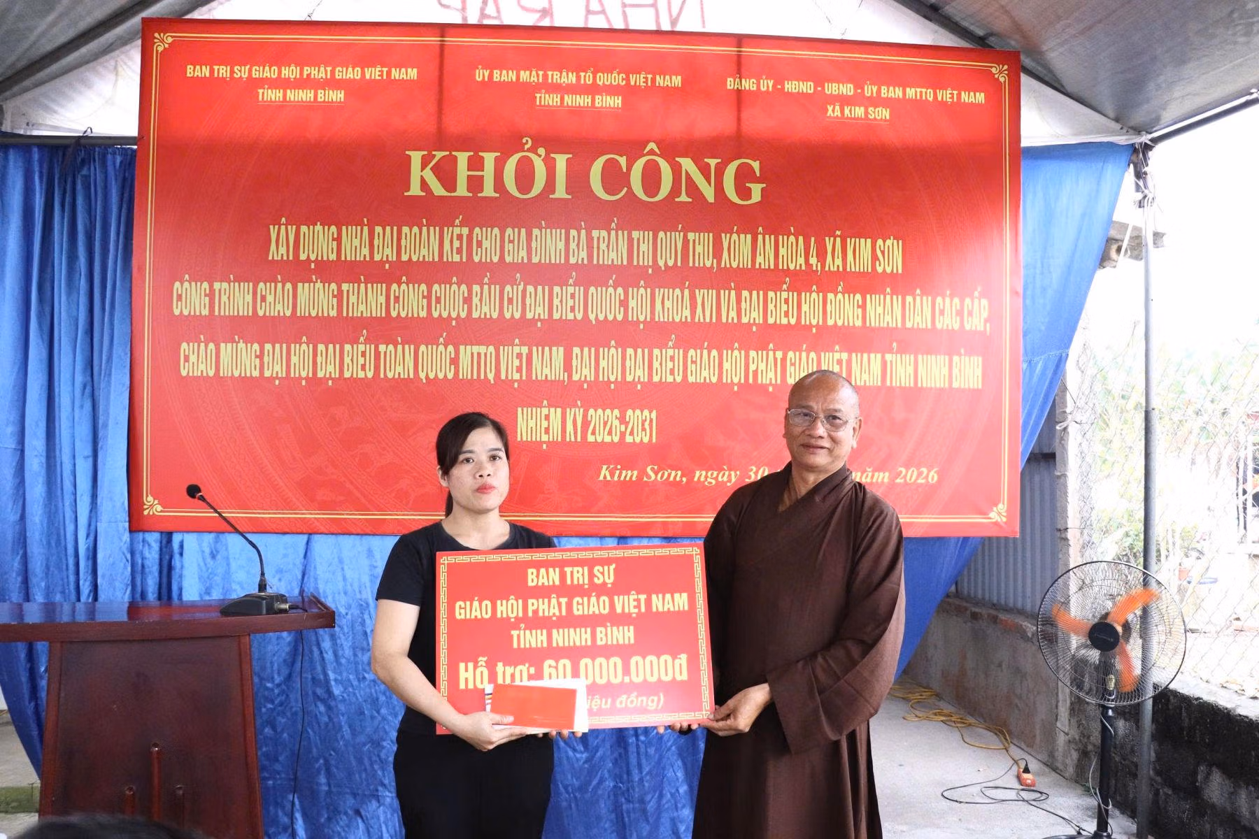 Phát biểu tại buổi lễ, ông Nguyễn Hoàng Hà - Ủy viên Ban Thường vụ Tỉnh ủy, Phó Chủ tịch Thường trực Ủy ban MTTQ tỉnh Ninh Bình cho biết: Ngôi nhà Đại đoàn kết của gia đình chị Thu là 1 trong 3 công trình được khởi công nhằm chào mừng thành công cuộc bầu cử đại biểu Quốc hội khóa XVI và HĐND các cấp nhiệm kỳ 2026-2031; hướng tới Đại hội đại biểu toàn quốc MTTQ Việt Nam lần thứ XI và Đại hội Giáo hội Phật giáo tỉnh lần thứ I.