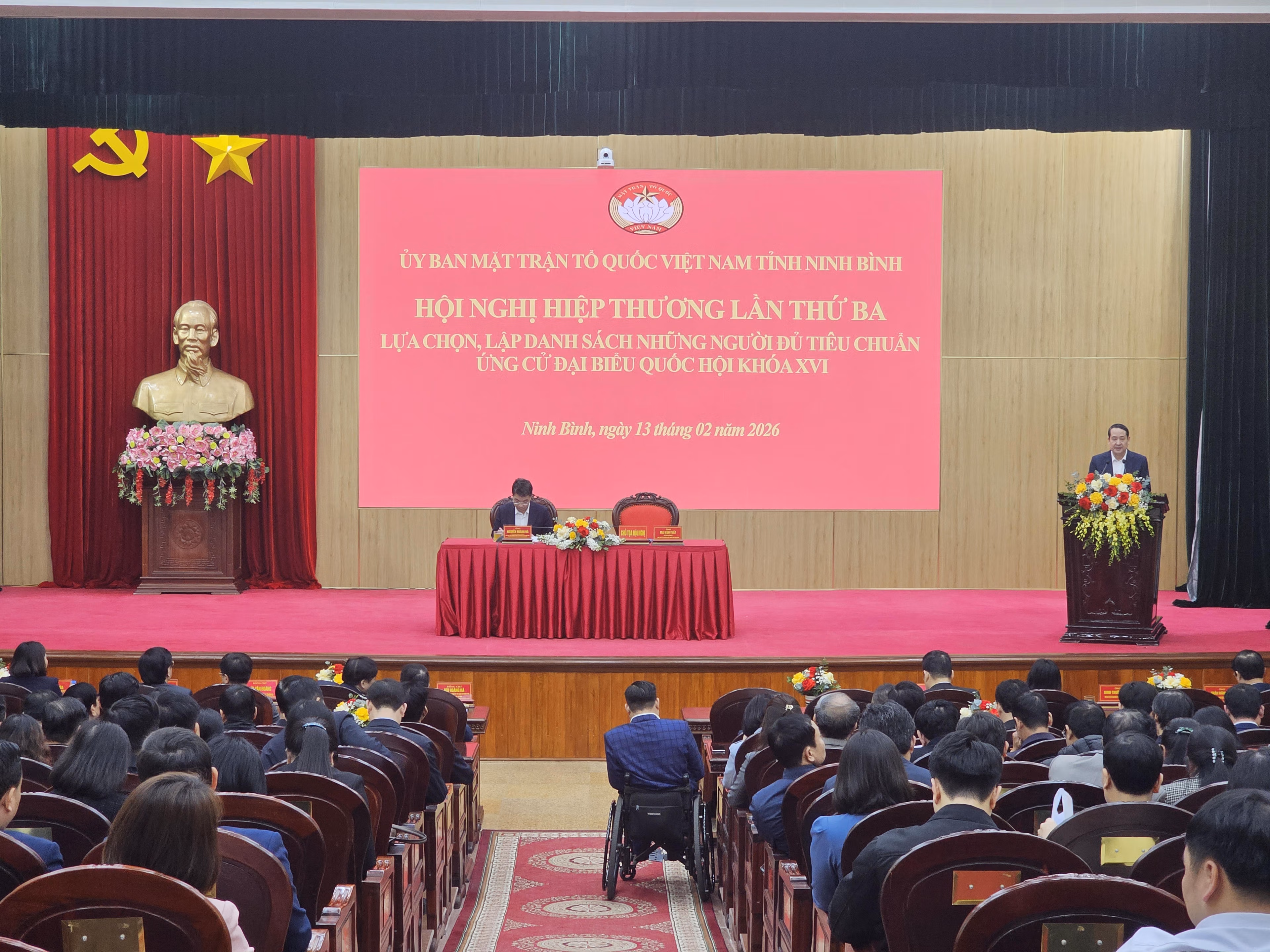 Tại hội nghị hiệp thương lần thứ 3 do Ủy ban MTTQ tỉnh Ninh Bình tổ chức, các đại biểu đã biểu quyết 100%, thông qua danh sách 26 người đủ tiêu chuẩn ứng cử đại biểu Quốc hội khóa XVI, bảo đảm cơ cấu, thành phần và điều kiện theo quy định.