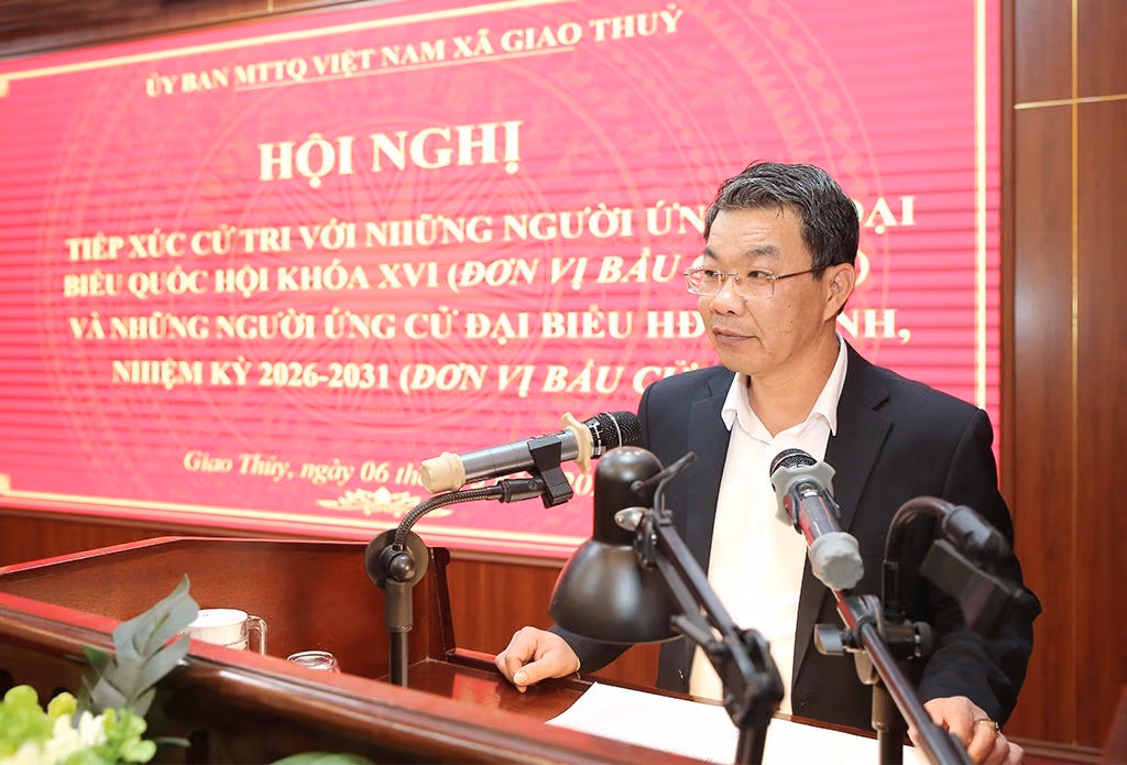 Cùng ngày, tại nhà văn hóa xã Giao Hưng, Giao Thủy, Ban Thường trực Ủy ban MTTQ 2 xã đã tổ chức hội nghị tiếp xúc cử tri với những người ứng cử ĐBQH khóa XVI tại đơn vị bầu cử số 8 và những người ứng cử đại biểu HĐND tỉnh nhiệm kỳ 2026-2031 tại đơn vị bầu cử số 22. Ứng cử viên tiêu biểu tại hội nghị là ông Nguyễn Hoàng Hà - Ủy viên Ban Thường vụ Tỉnh ủy, Phó Chủ tịch Thường trực Ủy ban MTTQ tỉnh.