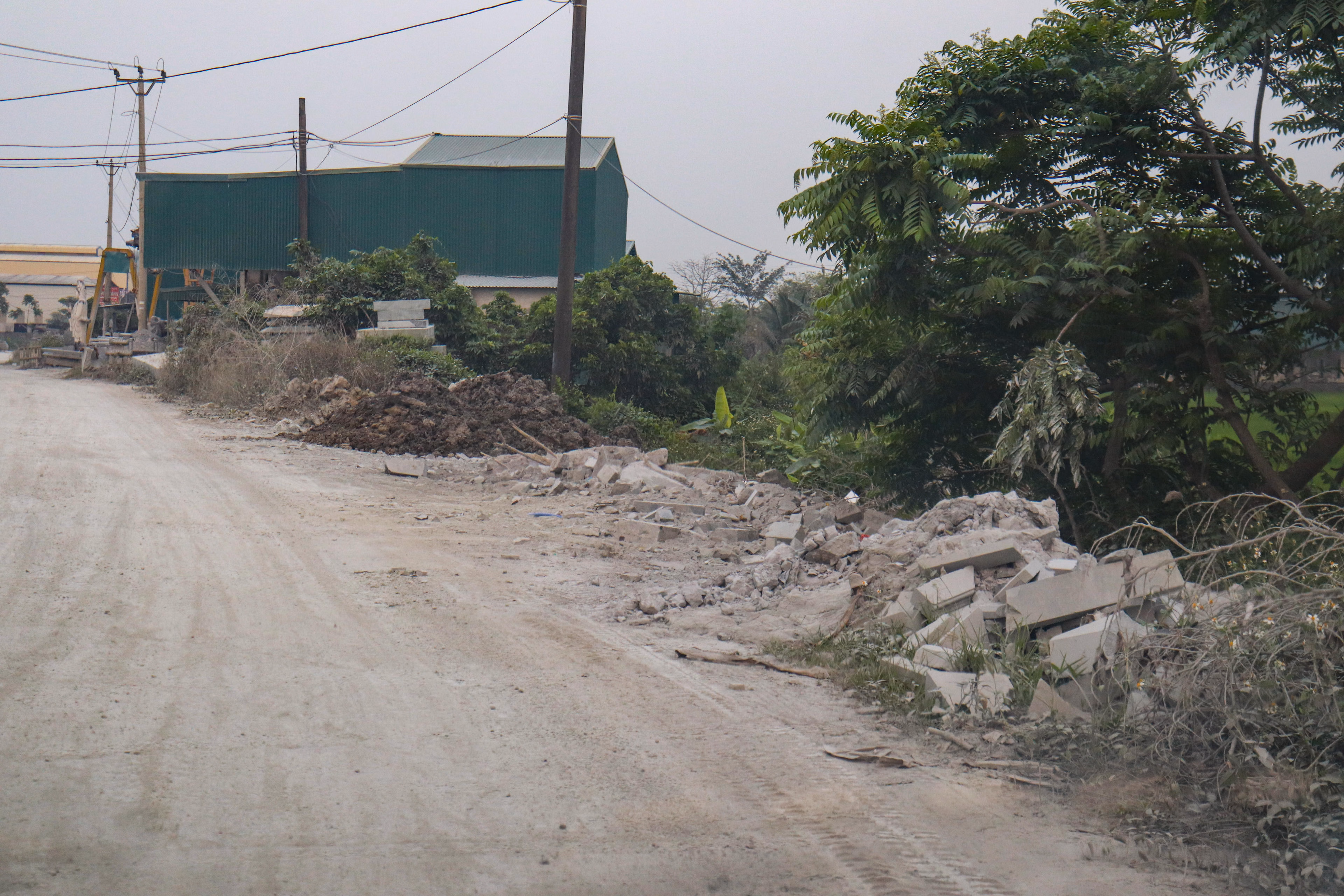 Tuy nhiên, với đa phần các điểm còn lại, chất thải vẫn được chất đống như núi, nằm ngổn ngang hai bên đường. Với một số cơ sở chế tác đá có dấu hiệu lấn chiếm hành lang đường giao thông, phía UBND phường cho biết, đã tuyên truyền, nhắc nhở, nếu tiếp tục vi phạm sẽ xử lý nghiêm theo quy định.