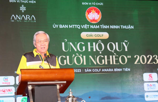 Phát biểu tại buổi lễ, ông Lê Văn Bình, Chủ tịch Ủy ban MTTQ Việt Nam tỉnh Ninh Thuận nhấn mạnh, Giải Golf ủng hộ Quỹ “Vì người nghèo”, lần đầu tiên được tổ chức không chỉ là sân chơi dành cho các golf thủ gặp gỡ, giao lưu, rèn luyện sức khỏe, kết nối, hợp tác, mà còn là dịp để các golfer, doanh nghiệp, doanh nhân hướng về cộng đồng và hy vọng rằng, từ tấm lòng hảo tâm, sự yêu thương, chia sẻ của các các golfer. Quỹ “vì người nghèo tỉnh Ninh Thuận” sẽ có thêm nguồn lực, cơ hội hỗ trợ cho nhiều số phận kém may mắn, tiếp thêm động lực cho nhiều người có hoàn cảnh khó khăn vươn lên trong cuộc sống.