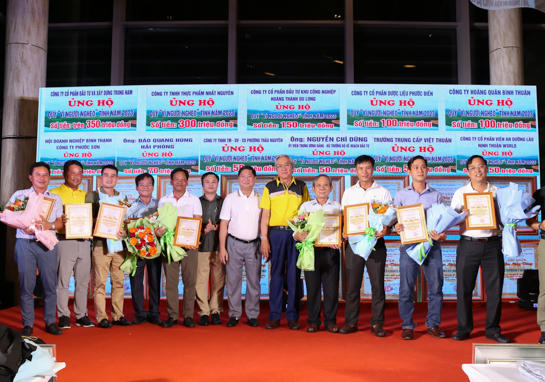 Nhân dịp này, ông Trần Quốc Nam, Chủ tịch UBND tỉnh Ninh Thuận đã tặng hoa và trao bảng ghi nhận Tấm lòng vàng cho các doanh nghiệp, tổ chức, cá nhân, các mạnh thường quân đã ủng hộ vào Quỹ “Vì người nghèo” của tỉnh Ninh Thuận.