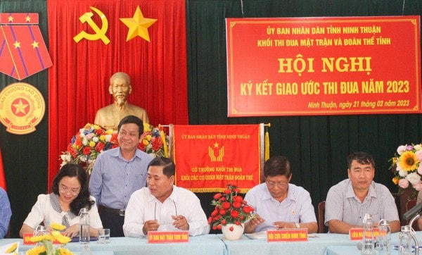 Tại hội nghị, đại diện lãnh đạo các đơn vị trong Khối thi đua Mặt trận - Đoàn thể tỉnh Ninh Thuận ký kết giao ước thi đua năm 2023.