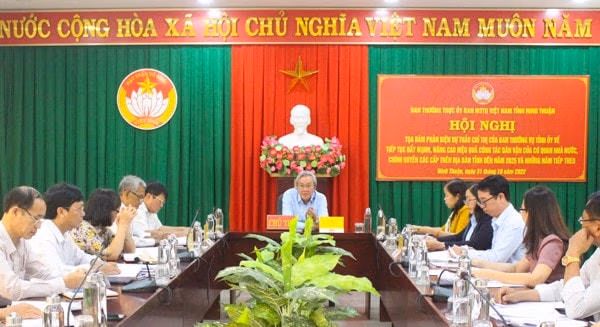 Chiều 31/10, Ủy ban MTTQ Việt Nam tỉnh Ninh Thuận, tổ chức tọa đàm phản biện dự thảo Chỉ thị của Ban Thường vụ Tỉnh ủy về tiếp tục đẩy mạnh, nâng cao hiệu quả công tác dân vận của cơ quan nhà nước, chính quyền các cấp trên địa bàn tỉnh Ninh Thuận đến năm 2025 và những năm tiếp theo. Ông Lê Văn Bình, UVTV Tỉnh ủy, Chủ tịch Ủy ban MTTQ Việt Nam tỉnh Ninh Thuận chủ trì Hội nghị.