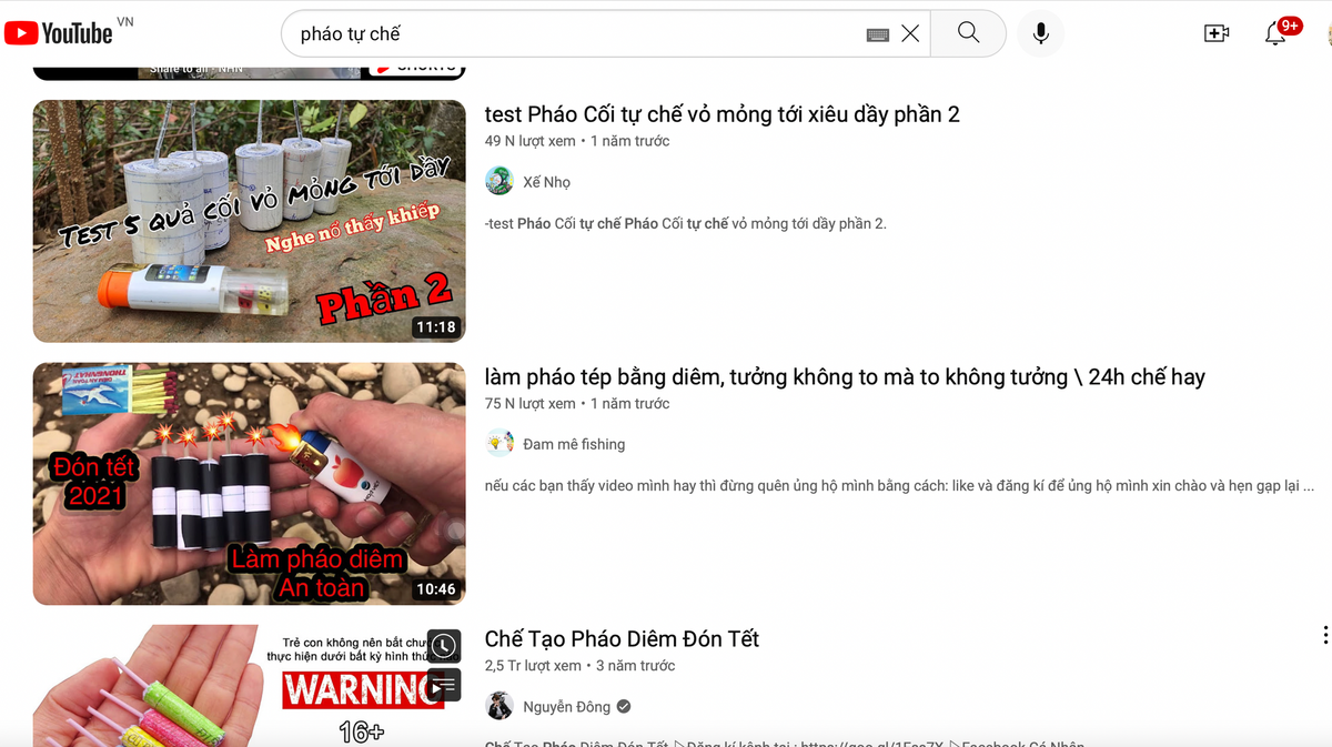 Trên Youtube, TikTok,… không khó để tìm ra hàng loạt những video hướng dẫn tỉ mỉ về cách thức chế tạo pháo, từ nguyên liệu, nén pháo, dồn pháo,… Trên một số hội nhóm kín Facebook, Zalo,… một số thanh niên trẻ cũng thường xuyên chia sẻ các kinh nghiệm tự chế pháo nổ, pháo hoa.