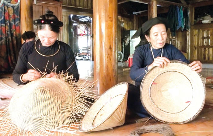 Cùng với bộ y phục, chiếc nón lá tô thêm vẻ đẹp nền nã, duyên dáng của người phụ nữ Tày. Từ thời xa xưa, người dân tộc Tày luôn coi trọng việc làm ra chiếc nón. Nó thể hiện sự khéo léo, duyên dáng của người con gái Tày. Nhiều cô gái Tày từ khi còn rất bé đã được các bà các mẹ dạy cách đan nón.