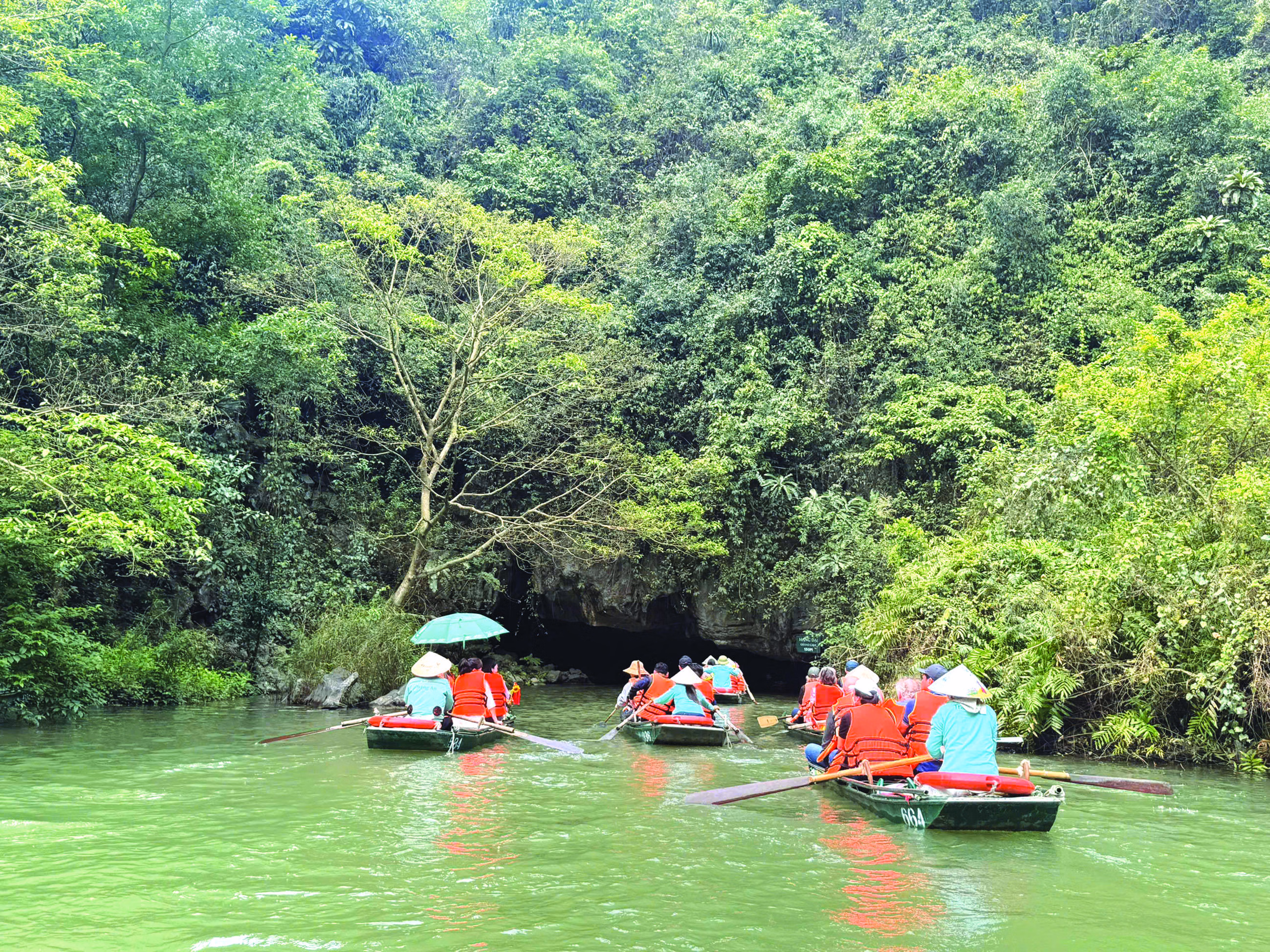 Trong tiết trời đầu xuân, Tràng An mang một vẻ đẹp dịu dàng và trong trẻo. Những con thuyền nhỏ chậm rãi đưa du khách qua dòng sông, khám phá các đình đền và hang động. Không ít du khách nước ngoài thích thú thử cầm mái chèo phụ, hòa mình vào nhịp sống sông nước hiền hòa. Giữa không gian tĩnh lặng ấy, non nước Tràng An không chỉ là một thắng cảnh, mà còn là nơi lưu giữ ký ức rất sâu của đất và người.