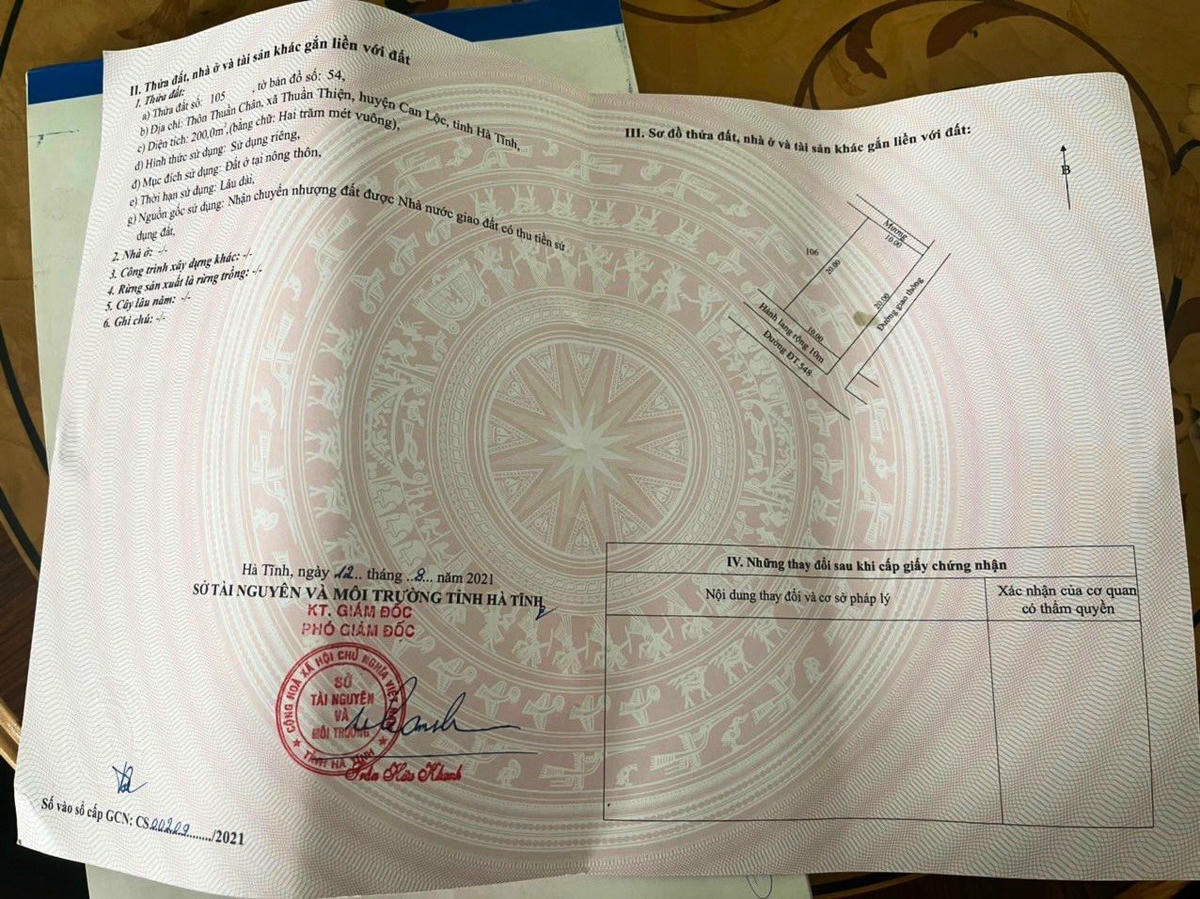 Sau đó, Nhiên gửi ảnh chân dung cho N. để làm giả CMND mạo danh là Ngô Thanh Thuỷ (37 tuổi, thường trú tại xã Hòn Phú, huyện Củ Chi, TP Hồ Chí Minh), đồng thời sử dụng giấy CNQSDĐ (sổ đỏ) giả của thửa đất số 105, tờ bản đồ số 54 (thuộc xã Thuần Thiện, huyện Can Lộc) mang tên Ngô Thanh Thuỷ để rao bán trên tài khoản Zalo “Thanh Thủy”.