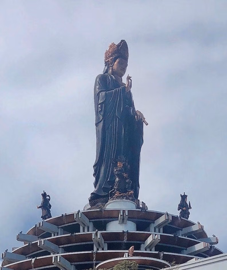 Giữa không gian bồng bềnh mây trắng, tượng Phật Bà - biểu tượng vĩnh hằng của trí tuệ, đức hạnh và tinh thần bác ái bao la đứng uy nghi, tiệp vào đất trời, hướng tuệ nhãn từ bi nhìn về phía hồ Dầu Tiếng như chỉ dấu thiêng liêng cho cả một vùng biên viễn.