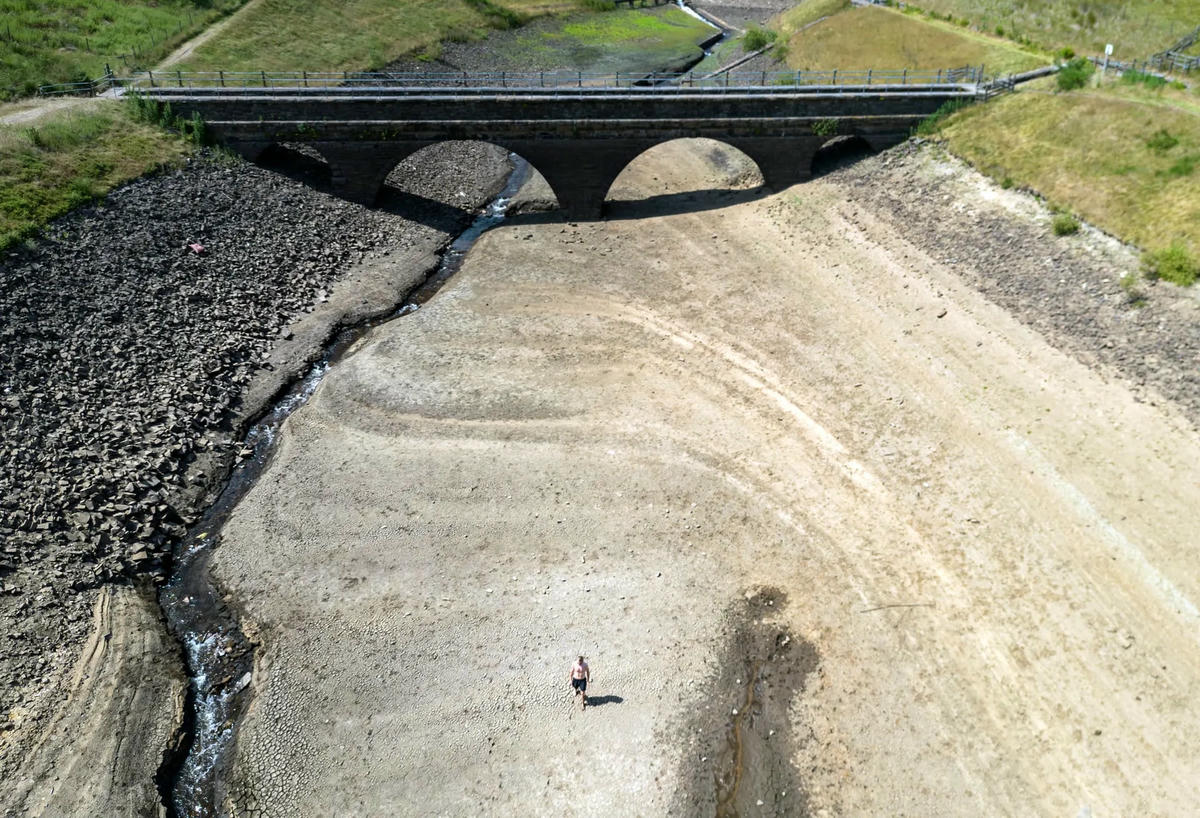 Người dân trú ẩn dưới tán cây trên sân Wimbledon Common phủ đầy cỏ khô. Ảnh: The Guardian.Một người đàn ông ngồi trong công viên Greenwich xác xơ ở London. Ảnh: The Guardian.Hai thiếu nữ vừa đi vừa tránh các vết nứt do hạn hán xuất hiện trên Đồi hoa Anh Thảo. Ảnh: The Guardian.Cảnh vật héo tàn từ trên không thuộc Câu lạc bộ gôn Burley trong Khu rừng Mới. Ảnh: The Guardian.Một người đi xe đạp qua Công viên Richmond cằn cỗi. Ảnh: The Guardian.Đáy hồ chứa Thruscross khô cạn ở Harrogate, North Yorkshire. Ảnh: The Guardian.Mực nước thấp đã làm lộ ra một cây cầu nằm ẩn mình dưới hồ chứa Baitings ở Tây Yorkshire. Ảnh: The Guardian.Lòng hồ chứa Woodhead khô cạn ở Glossop, Derbyshire. Ảnh: The Guardian.Lính cứu hỏa nỗ lực ngăn chặn đám cháy rừng xâm lấn vào các ngôi nhà lân cận ở khu vực Shiregreen của Sheffield. Ảnh: The Guardian.Một người đi bộ trên bờ cạn của một nhánh sông dẫn đến hồ chứa của Dowry ở Oldham, Greater Manchester. Ảnh: The Guardian.Dòng suối Roundmoor Ditch từng là nguồn nước giải nhiệt của gia súc trong khu vực, nay đã trở thành một bãi đất khô cằn. Ảnh: The Guardian.Khách du lịch tạo dáng selfie ở Quảng trường Quốc hội, trung tâm London dưới cái nắng 40 độ C. Ảnh: The Guardian.Một đám cháy lớn trên một cánh đồng lúa mì ở Eton Wick, Windsor. Ảnh: The Guardian.Khung cảnh xác xơ sau đám cháy rừng ở Blidworth, Nottinghamshire. Ảnh: The Guardian.Một cây cầu cắt ngang qua hồ chứa Woodhead ở Derbyshire, khi mực nước xuống mức thấp đáng báo động. Ảnh: The Guardian/Con lach cạn nước thuộc hồ chứa Pen-Y-Garreg và hồ chứa Garreg-ddu gần Rhayader ở Powys, Wales. Ảnh: The Guardian.
