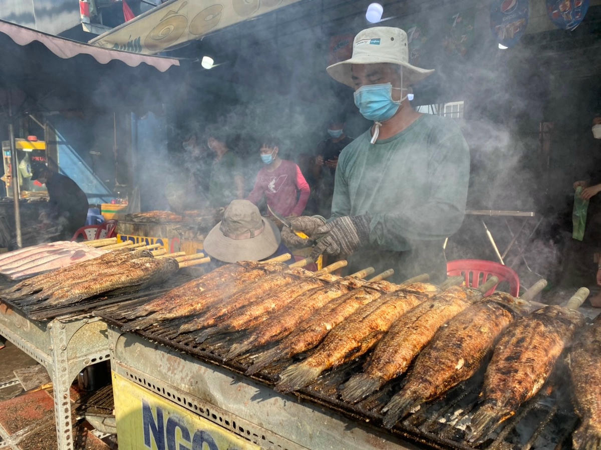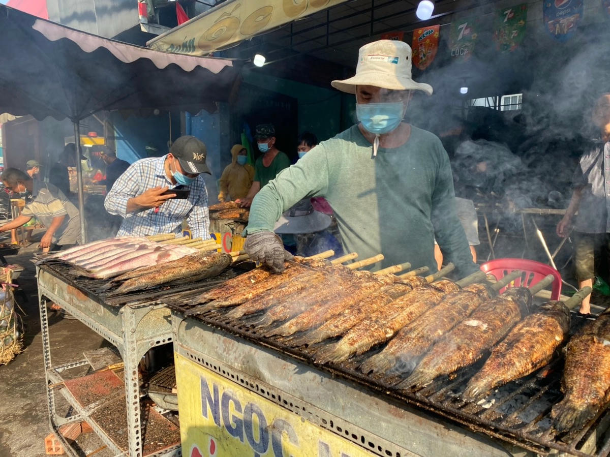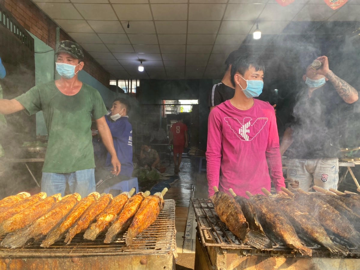 Trong đó nhiều cửa hàng bán tới vài tấn cá lóc nướng. Thậm chí nhiều tiệm còn huy động thêm người, nướng sơ qua từ trước đó nhiều ngày.
