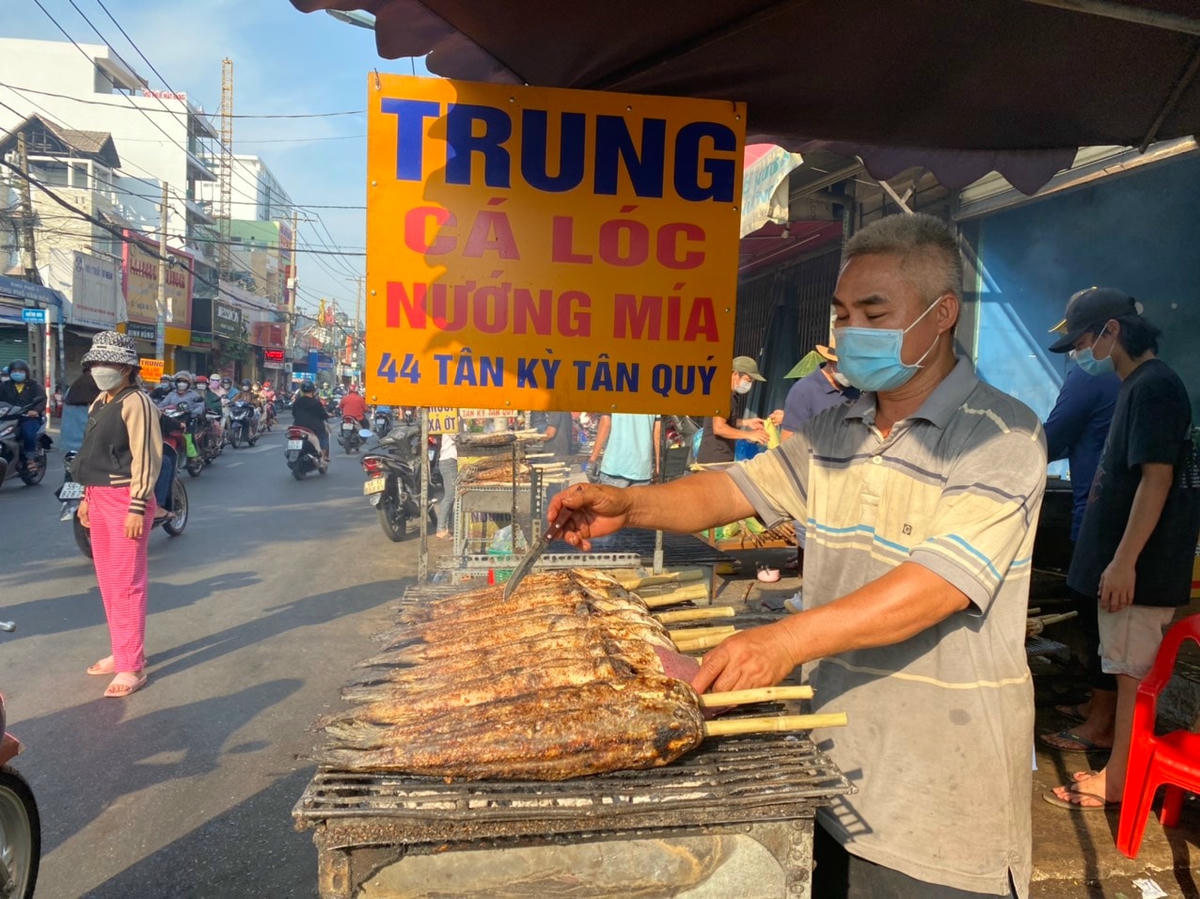 Là đường bán cá lóc nướng lớn nhất TP HCM, mỗi năm đến ngày Thần Tài (ngày 10 tháng Giêng âm lịch), hàng chục tiệm bán cá lóc nướng ở đường Tân Kỳ Tân Quý (quận Tân Bình) lại nhộn nhịp.
