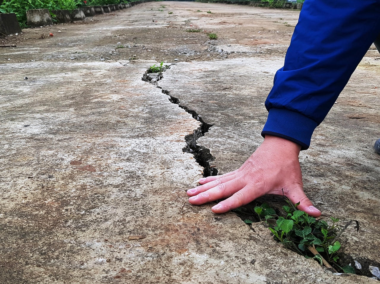 Có mặt trên đoạn đê tả sông Chu, đoạn từ ngã ba Hậu Hiền, xã Thiệu Tâm chạy qua các xã Thiệu Minh, Thiệu Toán, huyện Thiệu Hóa (Thanh Hóa), chúng tôi không khỏi giật mình bởi sự hư hỏng và xuống cấp khá nghiêm trọng của con đê cấp I này. Trên đoạn đê dài hơn 11 km chi chít các vết nứt kéo dài gần như suốt tuyến. Nhiều đoạn vết nứt đã há rộng đến gần 20 cm, cắm sâu vào thân đê. Phần mặt bê tông bị gãy vỡ nham nhở tạo thành những ổ trâu, ổ gà khấp khểnh, tiềm ẩn nhiều nguy cơ tai nạn cho người tham gia giao thông.