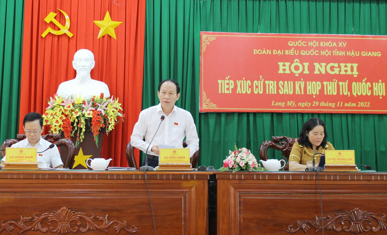 Ngày 29/11, Ủy viên Trung ương Đảng, Phó Chủ tịch - Tổng Thư ký UBTƯ MTTQ Việt Nam Lê Tiến Châu dẫn đầu đoàn đại biểu Quốc hội tỉnh Hậu Giang có buổi tiếp xúc cử tri tại huyện Long Mỹ và thị xã Long Mỹ.