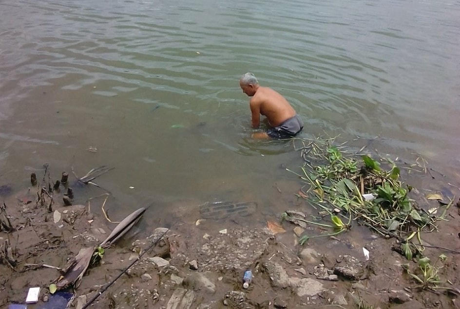 Trực tiếp quản lý đê điều, ông Kính phát hiện khu dân cư bị ngập nước do rác thải làm nghẹt cống, khiến nước không thể thoát đi. Thấy vậy, ông lại tình nguyện trầm mình dưới dòng nước đen vớt rác, khơi dòng để chống ngập.