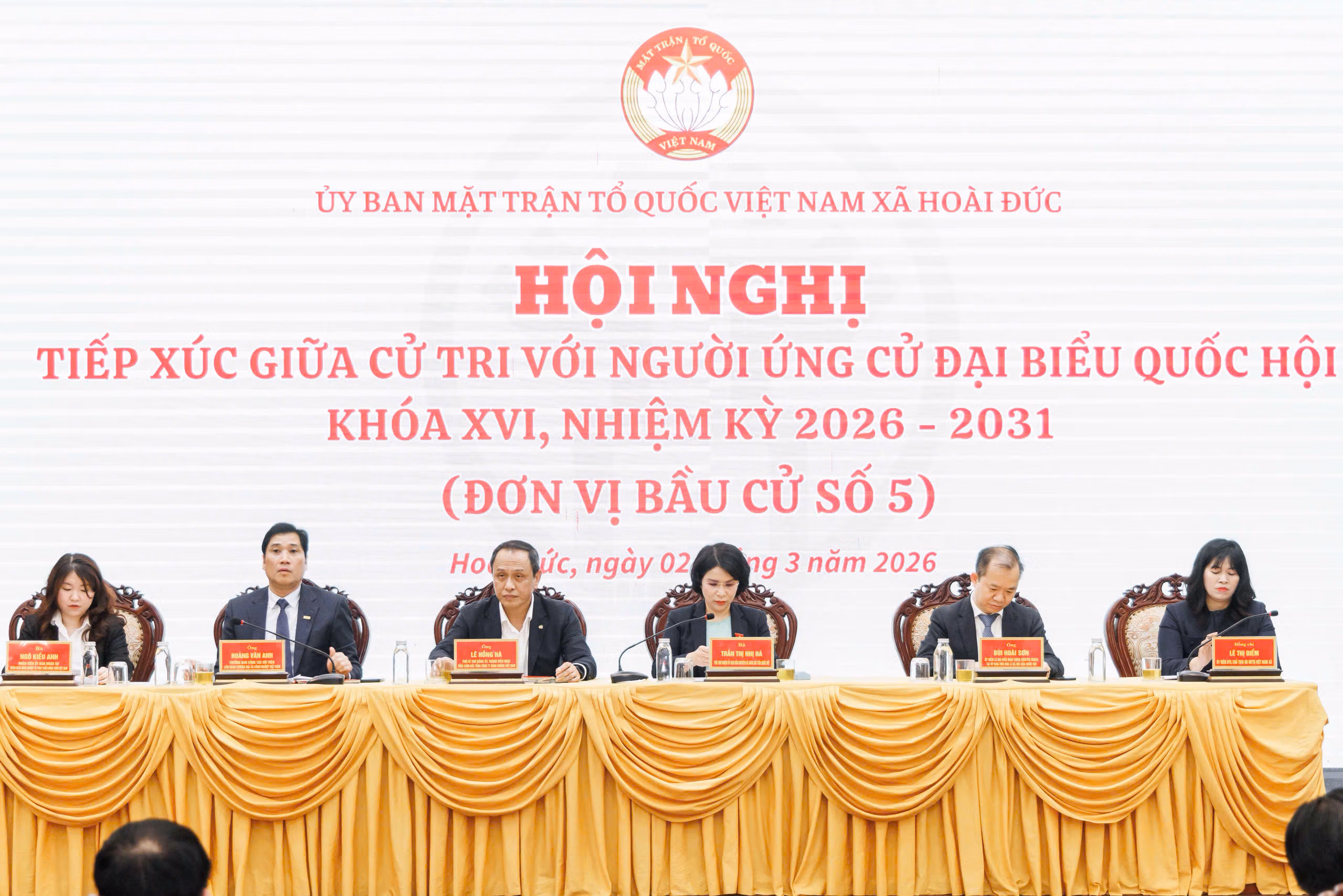 Chiều 2/3, ông Lê Hồng Hà - Phó Bí thư Đảng ủy, Thành viên Hội đồng quản trị, Tổng Giám đốc Tổng Công ty Hàng không Việt Nam (Vietnam Airlines) cùng các ứng cử viên ứng cử Đại biểu Quốc hội khóa XVI, nhiệm kỳ 2026 – 2031, đơn vị bầu cử số 5 tiếp xúc cử tri tại xã Hoài Đức (TP. Hà Nội).
