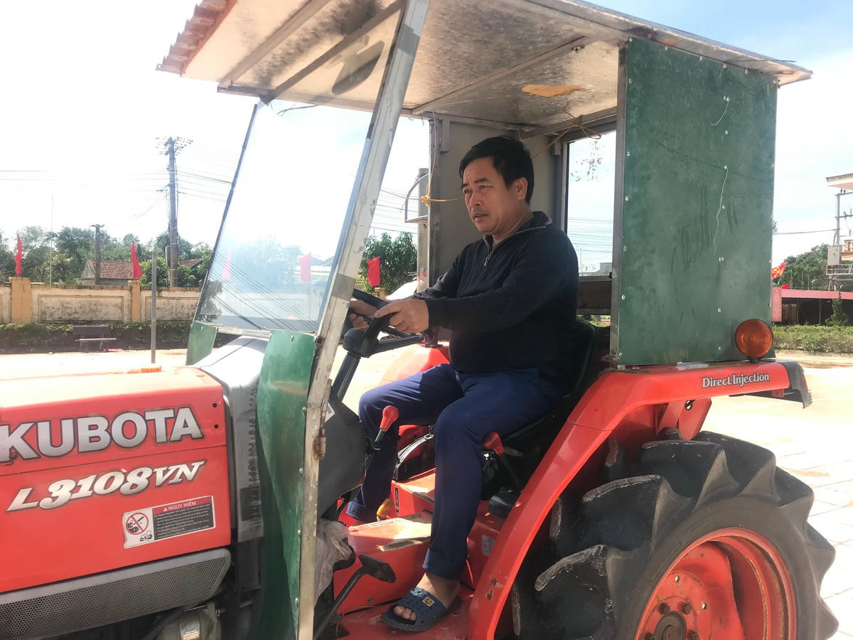 Đích thân ông Hoan lái chiếc máy cày chuyên dụng của gia đình nhà lên đường lớn để phục vụ việc kéo thuyền, đưa đồ đạc của người dân đến nơi ẩn náu.
