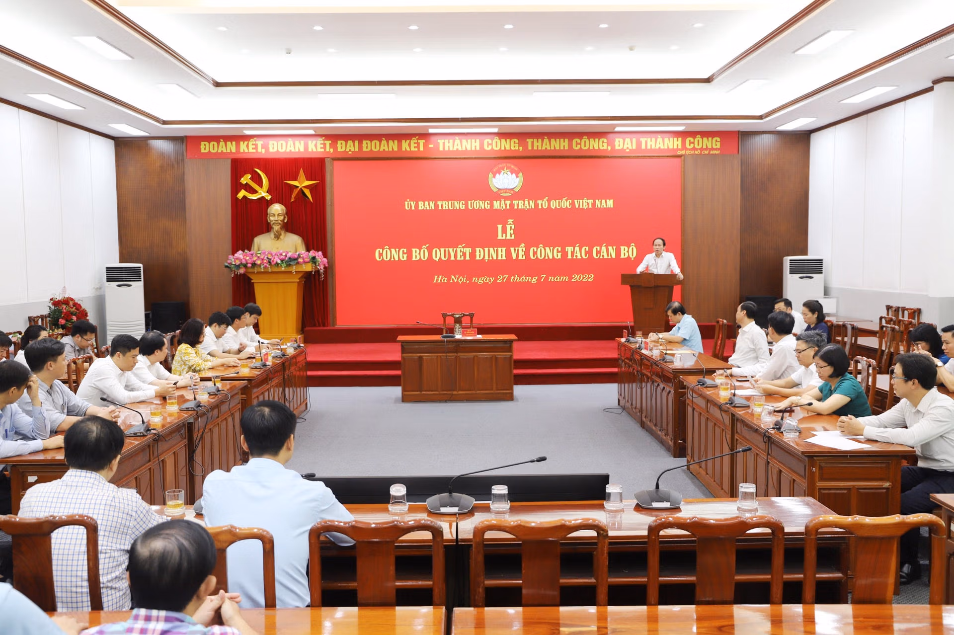 Sáng ngày 27/7, tại Hà Nội, Đảng đoàn, Ban Thường trực UBTƯ MTTQ Việt Nam tổ chức Lễ công bố quyết định về công tác cán bộ. Ông Lê Tiến Châu, Ủy viên Trung ương Đảng, Phó Chủ tịch – Tổng Thư ký UBTƯ MTTQ Việt Nam chủ trì buổi lễ.