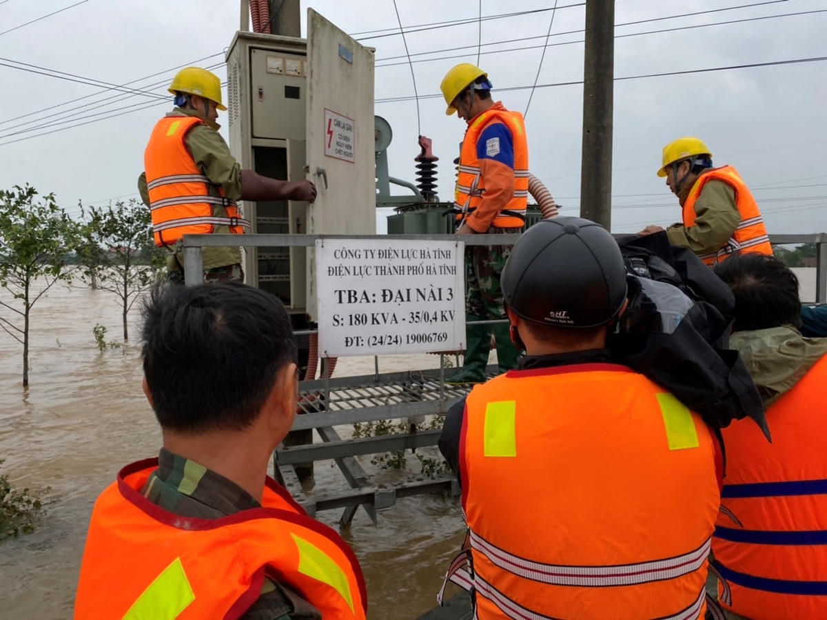 Ngay từ sáng 20/10/2020, sau khi lượng mưa giảm, nước có chiều hướng rút, Công ty Điện lực Hà Tĩnh đã khẩn trương, huy động toàn bộ lực lượng CBCNV, trang bị đầy đủ bảo hộ lao động, áo phao, phao cứu sinh, xuồng… tiến hành kiểm tra các trạm biến áp, đường dây, sa thải các phụ tải đang ngập nước đồng thời xử lý, khắc phục các tồn tại trước khi đóng điện đưa vào vận hành nhằm đảm bảo an toàn điện trong nhân dân sau khi nước rút.
