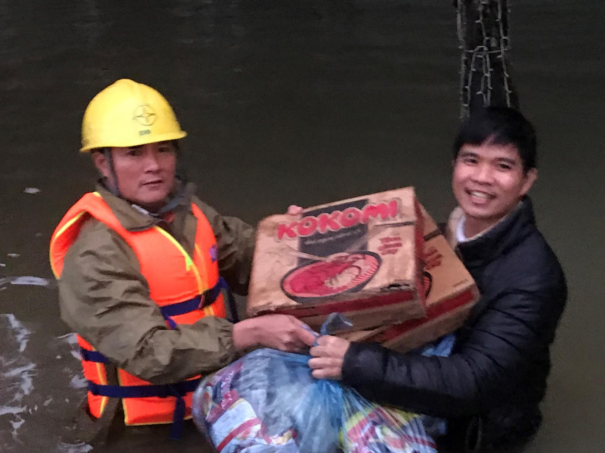 Thấu hiểu những khó khăn, vất vả của bà con trong vùng ngập lụt, ngoài việc hỗ trợ chính quyền ứng cứu, di dân ra khỏi vùng ngập lụt, nhiều công nhân đã thể hiện nghĩa cử cao đẹp của mình, chia sẻ, giúp đỡ bà con một số thực phẩm cần thiết như nước uống, mì tôm… giúp họ chóng chọi qua cơn lũ lụt.